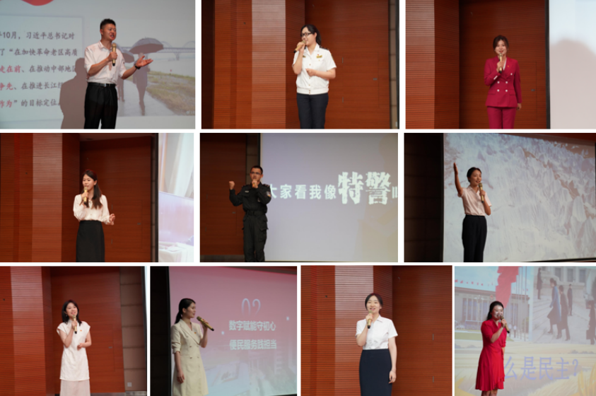 来自市水利局、市海事局、市退役军人事务局、市融媒体中心、市公安局、市博物馆、九江学院、市中医院、九江学院附属口腔医院、市人大机关等10个单位的青年干部,结合工作实际和身边故事,聚焦习近平总书记关于本领域重要讲话重要指示批示精神开展微宣讲。从长江水的生态守护到文化自信的世界传递,从尊崇之光的城市温度到医者仁心的民生情怀,从探寻长江文脉到扎根稻田实践民主,微宣讲以“小切口”反映“大主题”,将习近平新时代中国特色社会主义思想的丰富内涵和实践要求以通俗易懂的语言呈现给观众,让新思想接地气、有温度、入人心。