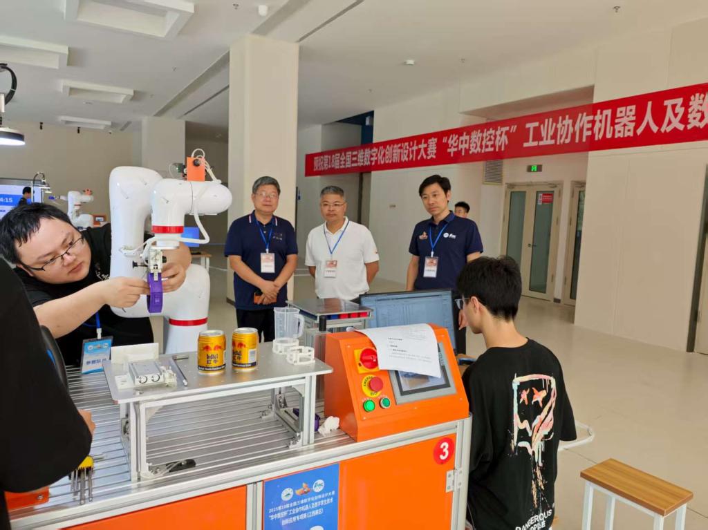 7月2日至4日,2025年第18届全国三维数字化创新设计大赛“华中数控杯”工业协作机器人及数字孪生技术创新应用专项赛(江西赛区)在九江学院智能制造中心举行。赛事由全国三维数字化创新设计大赛组委会、江西省机械工程学会主办,九江学院承办,武汉华中数控股份有限公司协办并提供技术支持。来自南昌大学、景德镇陶瓷大学、江西科技师范大学等12所高校的60余支队伍、200余名师生参赛。