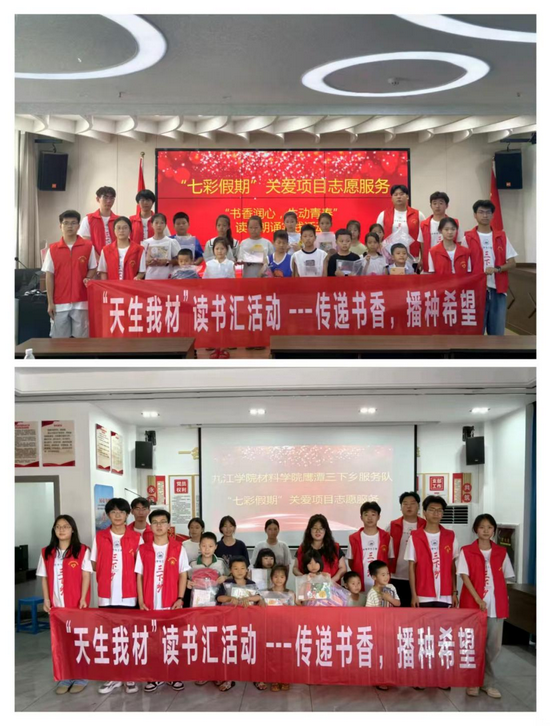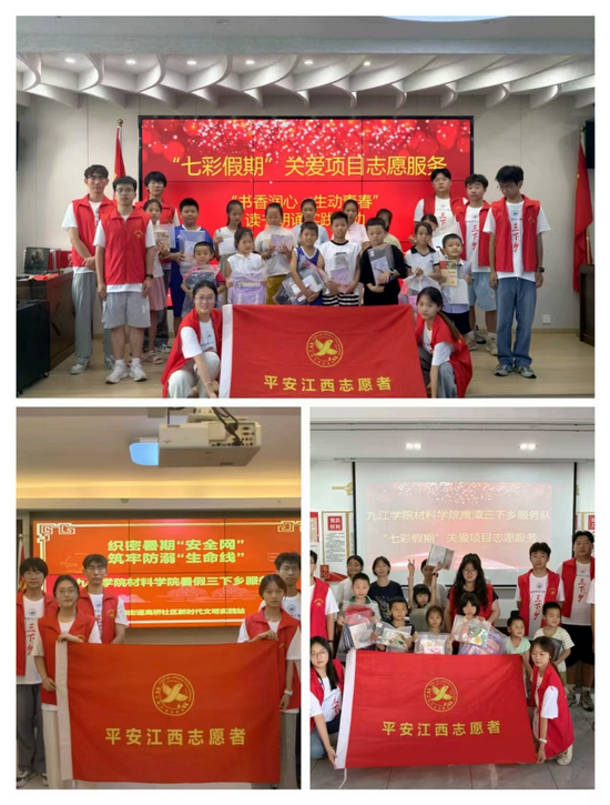 从安全课堂到书香长廊,从红色足迹到文明宣讲,九江学院材料科学与工程学院参与暑期“三下乡”的志愿者们,用青春与智慧为青少年打造出一个丰富多彩的“七彩童话镇”。这场“七彩假期”关爱项目志愿服务,不仅是一次服务社会的实践,更是一堂生动的成长之课。志愿者们在奉献中收获,在实践中成长,他们将带着这份温暖与力量,继续驶向更广阔的天地,书写更多精彩的青春故事。