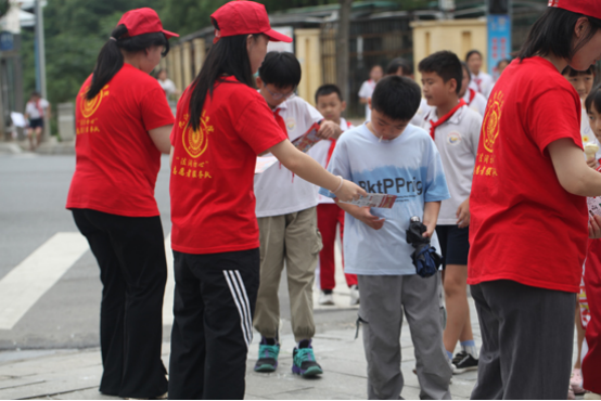 6月25日上午,服务队前往共青城第二小学、共青城中学开展未成年人普法活动。志愿者们先在学校周边发放普法宣传单,重点讲解未成年人在网络环境中的权利和义务,引导同学们树立正确的网络法治观念。下午,服务队来到金湖乡凤凰村特色法治长廊参观学习并相互交流,提升自身法治素养。参观学习后,队员们为来往的村民详细讲解长廊上的法条案例,深度普及相关法律知识。