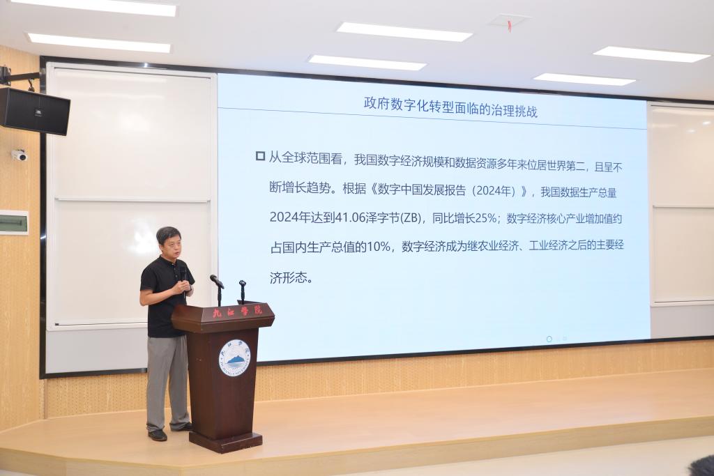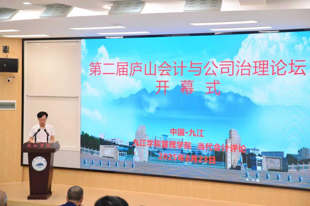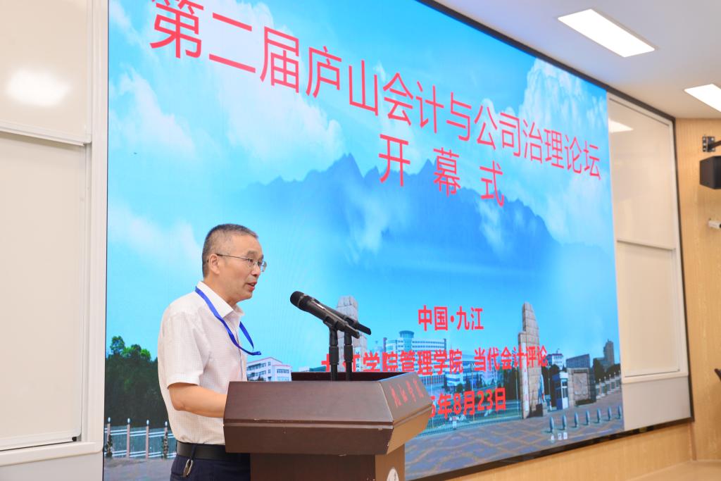 吴维勇在致辞中介绍了九江学院深厚的办学历史、显著的发展成就和管理学科的鲜明特色。他指出,本次论坛以“AI时代会计与公司治理变革,助力经济高质量发展”为主题,精准契合时代脉搏与现实需求,当前AI技术正深刻推动会计与公司治理领域的全方位重构,希望以论坛成功举办为契机,搭建起理论与实践的桥梁,凝聚技术变革共识,通过深化合作助推学科发展、服务经济高质量发展。最后,他祝愿各位专家在九江收获丰硕成果与美好体验,预祝论坛取得圆满成功。