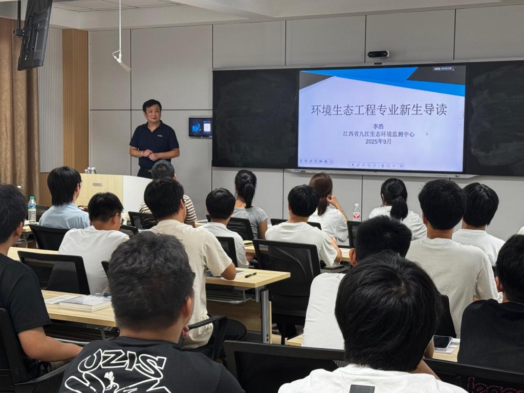 环境生态工程专业导读课上,李浩从学生疑惑出发,介绍生态环境监测工作内容和技术体系,展示监测工作价值,增强学生行业归属感。
