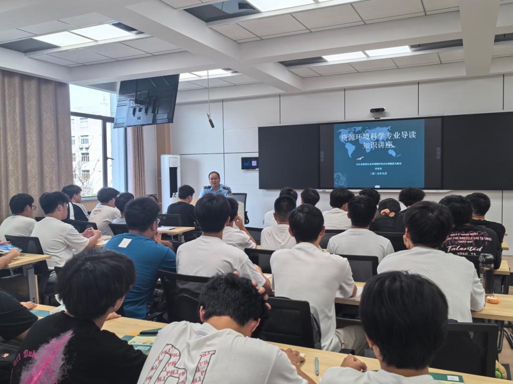 此次讲座,资源环境学院积极搭建政校企交流平台,邀请江西省九江生态环境监测中心主任、九江市生态环境局党委委员李浩,柴桑生态环境执法大队长冷春龙,九江美景水处理科技有限公司总经理徐彬等行业专家走进课堂。政校企三方携手,实现优质资源共享,为新生提供全方位专业引导。