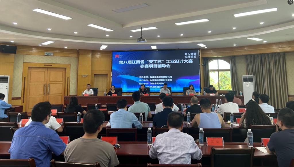 为助力参赛选手精准把握第八届江西省“天工杯”工业设计大赛赛事方向、提升作品竞争力,进一步激发工业设计领域的创新活力,9月28日,由九江市工业和信息化局主办、九江学院和九江市发明学会承办、协办的参赛项目辅导会在我校举行。江西省工业设计学会秘书长李民、江西省工业设计协会秘书长金昕、九江市工业和信息化局及我校创新创业学院相关负责人,企业代表及高校师生等60余名参赛选手参加辅导培训。