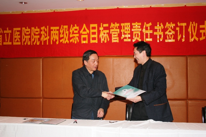 林家禄副书记签订仪式结束时说,科室主任庄重地与院长签订了目标责任书,这意味着医院科主任向医院作出了郑重承诺,标志着医院内部加快科学管理进程,体现着院科两级构建和谐医院,实现医院发展新跨越的坚定决心。综合目标管理责任制工作成功与否,科主任是关键。现在,科主任肩上的担子更重了。希望大家明确一点,要端正认识,综合目标管理责任制不是搞经济承包,要以医疗事业发展、科室建设进步、病人满意为出发点,全力抓好医疗、教学、科研、科室管理等各项工作,提高工作效率,凝聚全体人员的力量,发挥每个人的积极性,努力完成各项工作目标。(黄守勤 陈文宾)