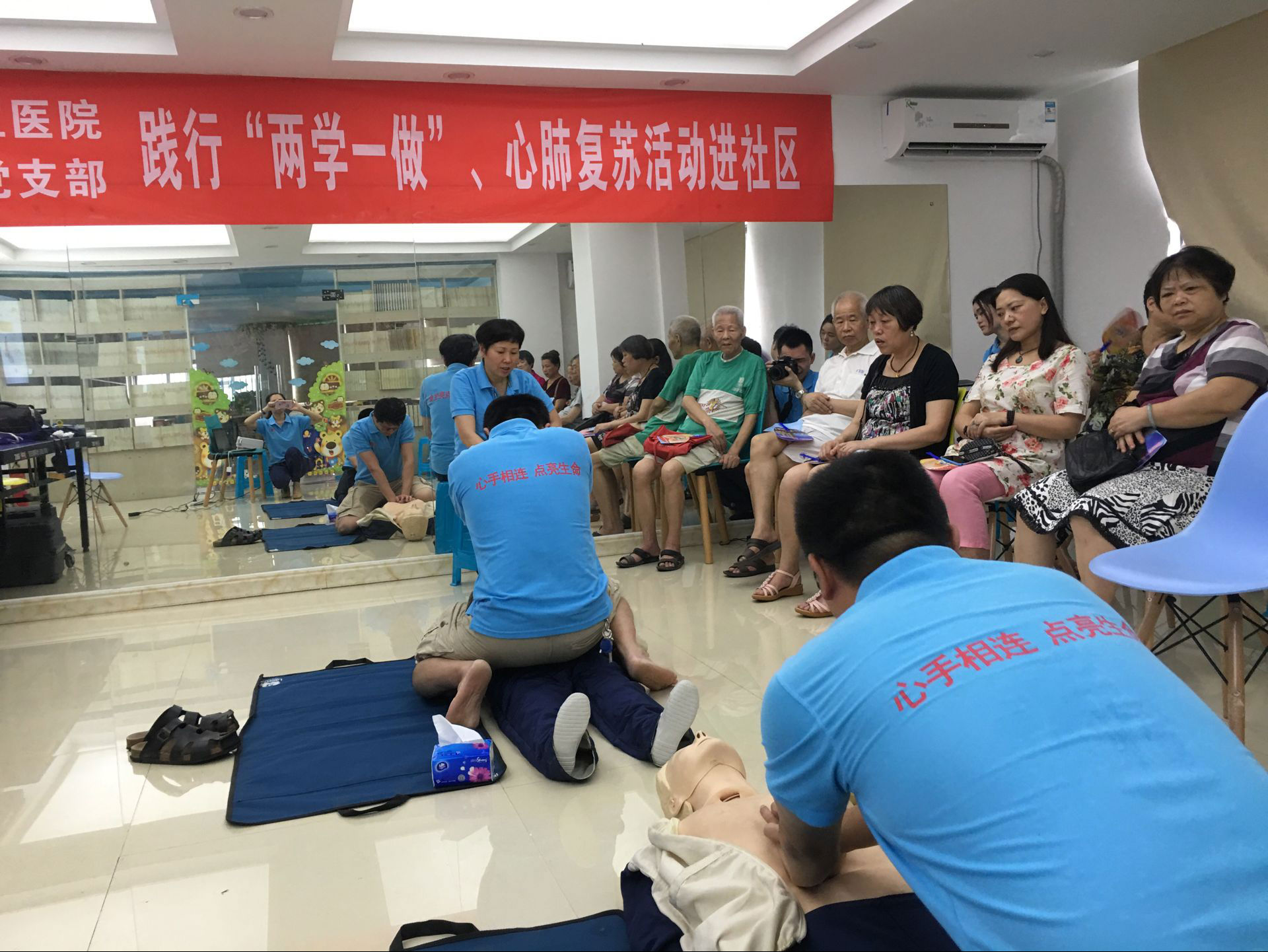 心外科党支部发挥自身优势,精准发力,把进社区开展心肺复苏公益活动与“两学一做”学习教育结合起来,切实发挥党员先锋模范带头作用。