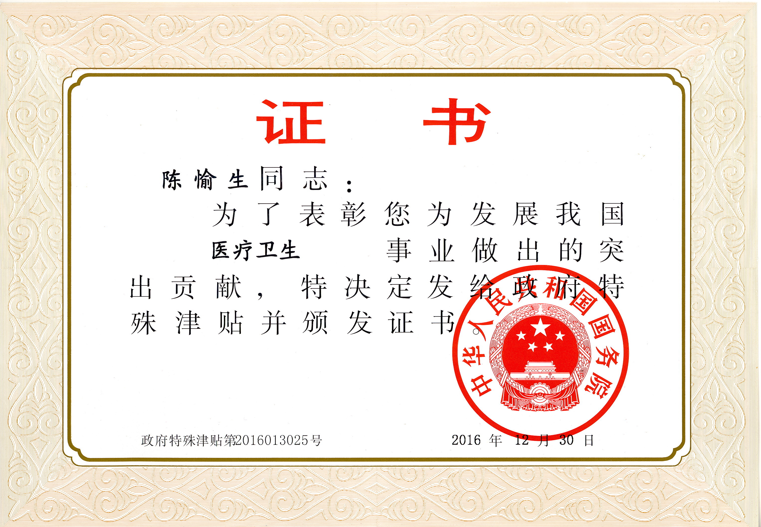 近日,福建省政府公布2016年享受国务院政府特殊津贴专家名单,我院陈愉生教授榜上有名。