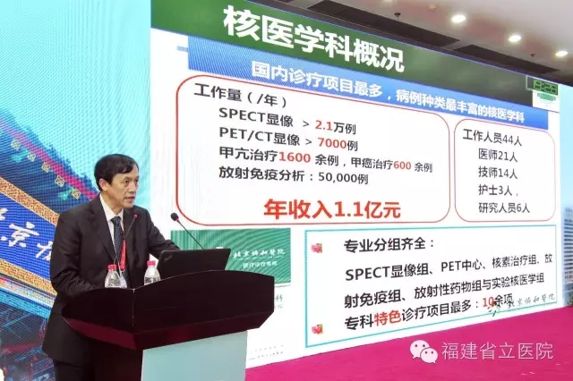 北京协和医院核医学科是我国最早成立的临床核医学科之一,最早建立的PET中心之一,同时是教育部重点学科、国家卫生计生委临床重点专科、放射性药物临床药理基地,是国内规模最大、诊疗项目最多、病例种类最丰富的核医学科。目前有工作人员44人,其中博士生导师4人,正教授6人,副教授8人。在复旦大学医院管理研究所发布的2014年、2015年度“中国最佳专科声誉排行榜”中连续两年蝉联榜首。
