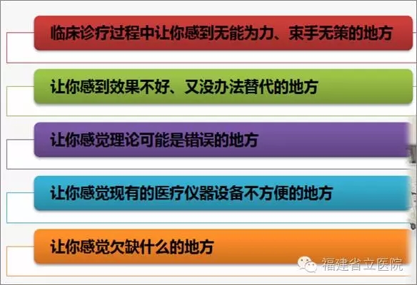 问题驱动、怀疑一切、挑战规则是推动临床科研的动力。医院管理、医疗服务、医学教育、数字医疗、生物医学等任一领域的探索创新都是很好的科研课题,以下略举几例,希望起到举一反三的作用。