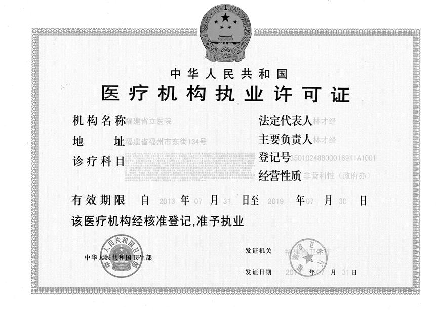 中华人民共和国医疗机构执业许可证