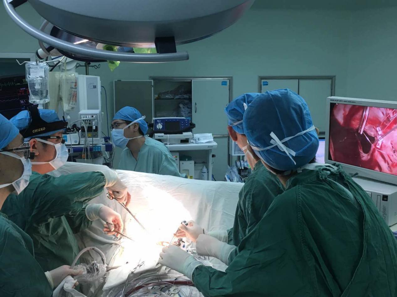 翁国星副院长带领心外二科团队进行电视胸腔镜再次三尖瓣置换手术