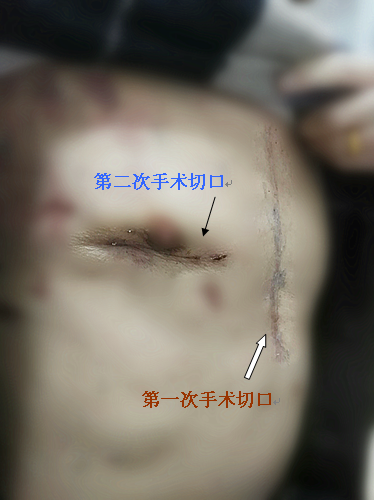 白色箭头为第一次常规手术切口,而且需要锯开胸骨
