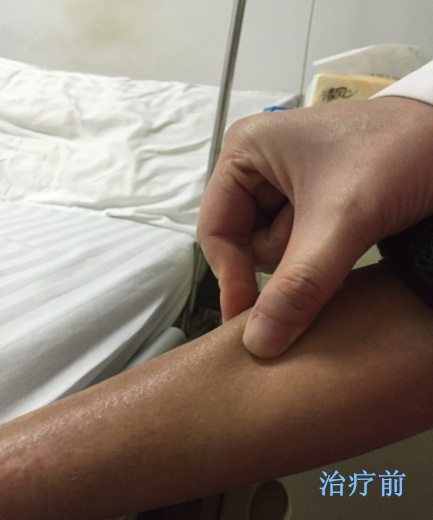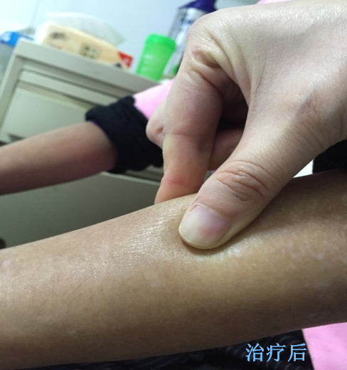 治疗后,前臂皮肤肤色变白,纤维化改善