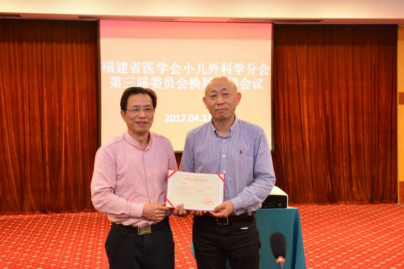 会议选举产生新一届分会主任委员,副主任委员及常委。我院儿外科主任、主任医师徐迪当选第四届委员会主任委员;第三届主任委员贺晓伟主任医师担任名誉主任委员;儿外科邱宏主任医师、何少华副主任医师当选常委;心外科谢琦主任医师,儿外科庄曦副主任医师、康映泉副主任医师等当选委员。我院继续成为福建省医学会小儿外科学分会的挂靠单位。