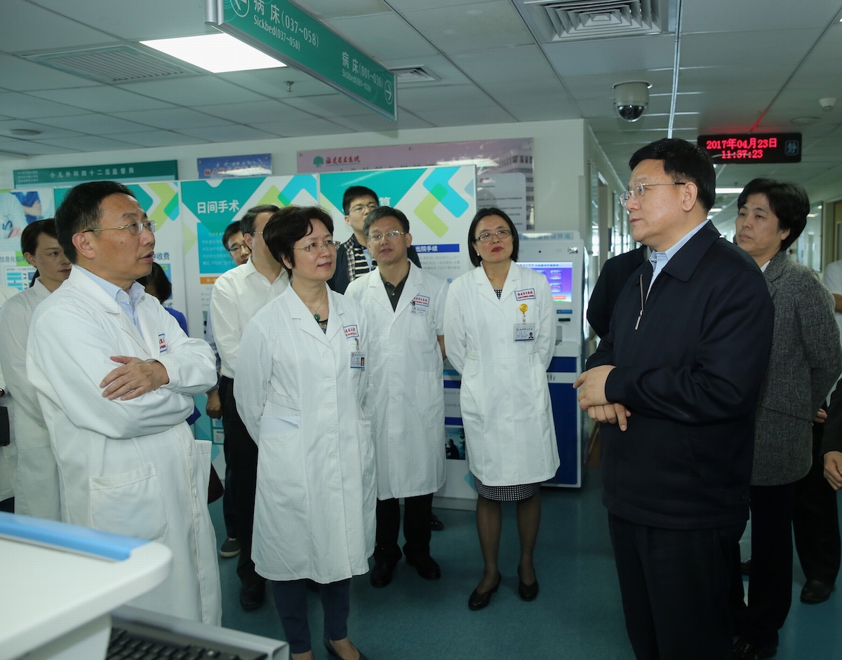 4月23日上午,国务院医改办主任、国家卫生计生委副主任王贺胜莅临我院调研医改工作。福建省政协副主席、省医改领导小组副组长李红,我院院长、党委书记朱鹏立陪同调研。