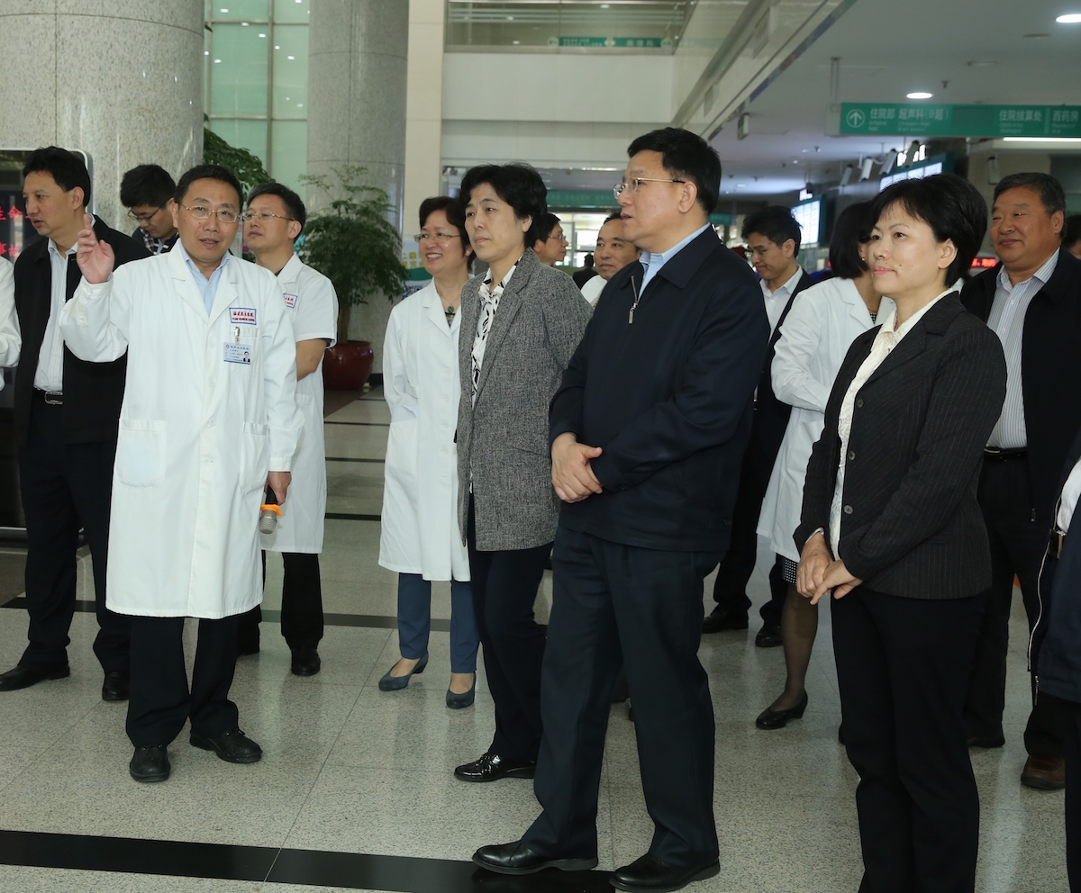 王贺胜一行听取了我院公立医院改革、改善医疗服务、高水平医院建设等情况汇报,详细了解临床路径、按病种付费、日间手术、床边结算、信息化建设、医院服务中心等工作开展情况。王贺胜充分肯定了我院各项工作成效,特别对我院大力实施管理创新和文化建设,以及从细节入手改善医疗服务的措施给予高度评价。