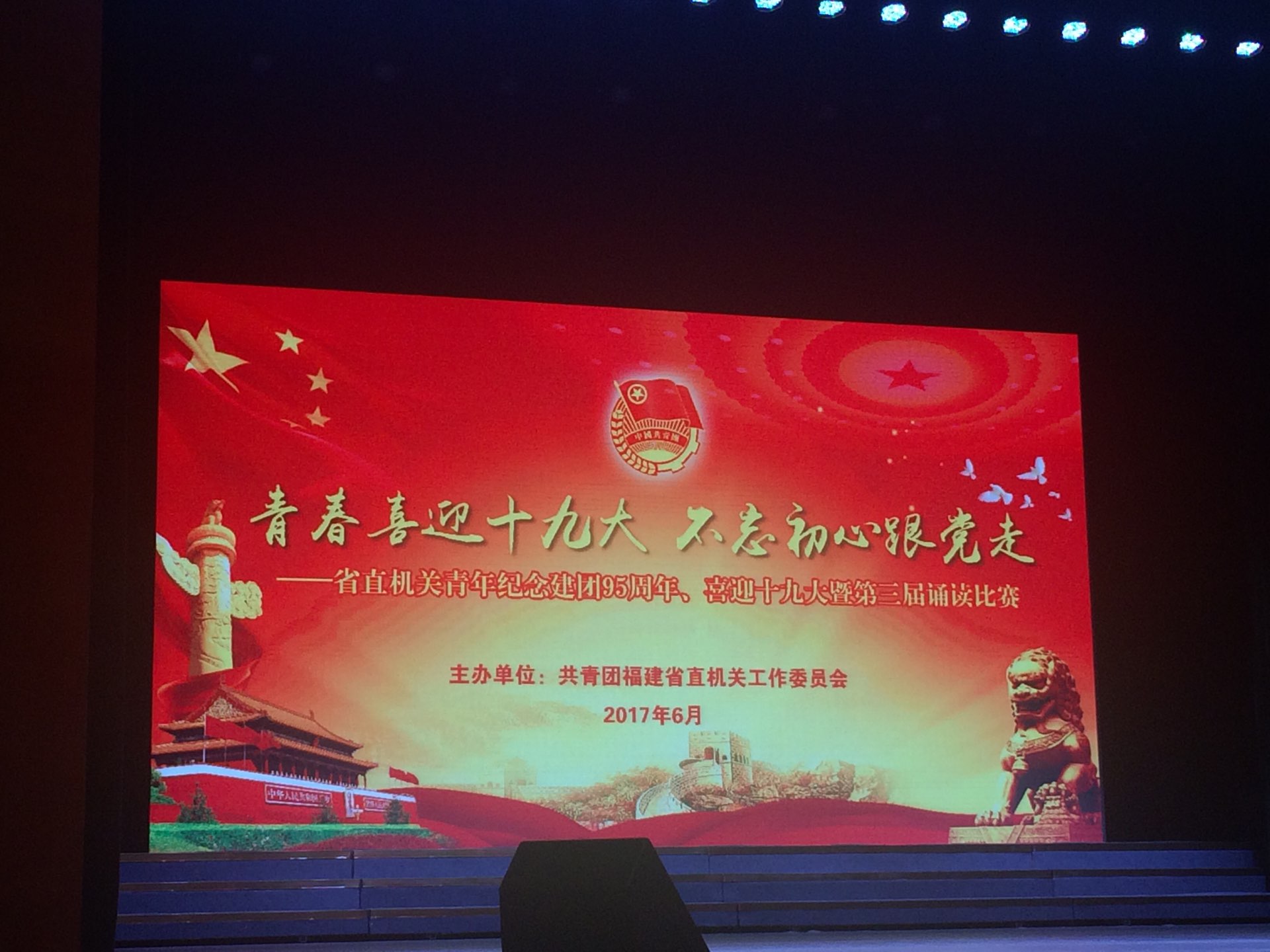 6月13日上午,福建省直机关青年纪念建团95周年喜迎十九大暨第三届诵读比赛在福建省老干局金秋剧场隆重举行。此次共有93支省直机关代表队参赛。我院重症医学二科何淑芳以及急救中心代表队在诵读比赛中分别获得一等奖和三等奖的好成绩。