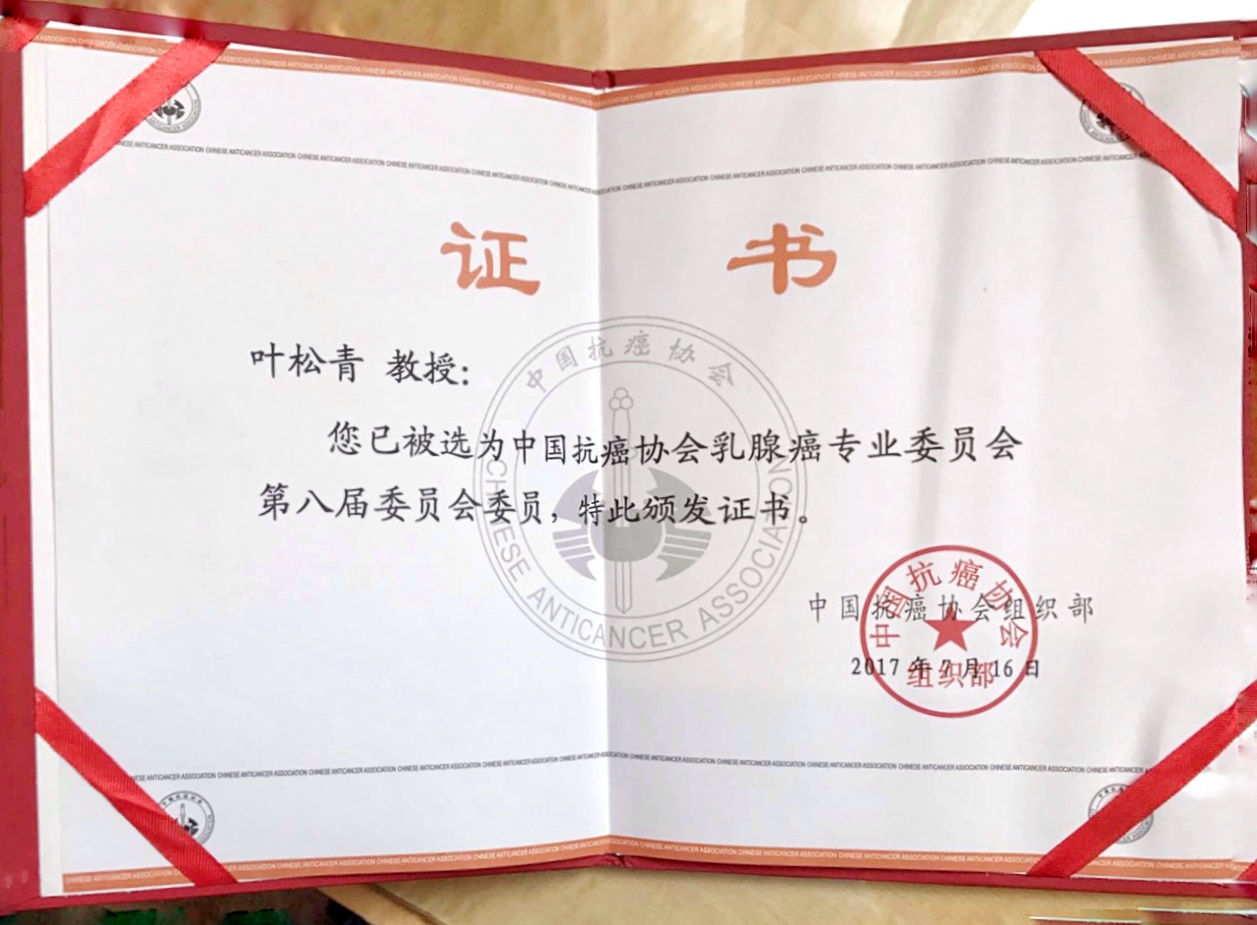 中国抗癌协会乳腺癌专业委员会(CBCS)于1986年正式成立,是国内乳腺癌领域极具权威的学术机构,致力于团结全国乳腺癌专业的临床和科研工作者,紧跟国际乳腺领域的学科发展,探索中国人群乳腺癌循证医学数据,从而提高全国乳腺癌领域的诊治水平。目前全省仅有三位专家入选。