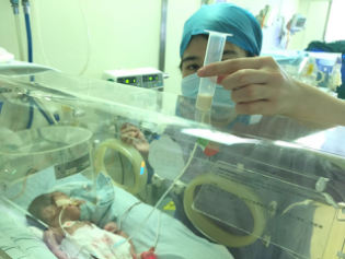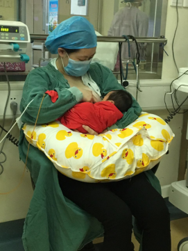 坚持开展门诊孕妈妈班培训、宝宝课堂等宣教活动,宣传母乳喂养的优势之处,为产妇解决哺乳中的问题和难题;若宝宝出生后,因为疾病被送入NICU,我们及时指导妈妈如何在母婴分离的情况下,保持泌乳,并坚持送奶,确保宝宝能吃到营养丰富的“口粮”。当宝宝病情稳定,护理人员教授家长进行“袋鼠式护理”,增进家长与宝宝间的互动,促进母亲乳汁分泌并提供直接的母乳喂养。