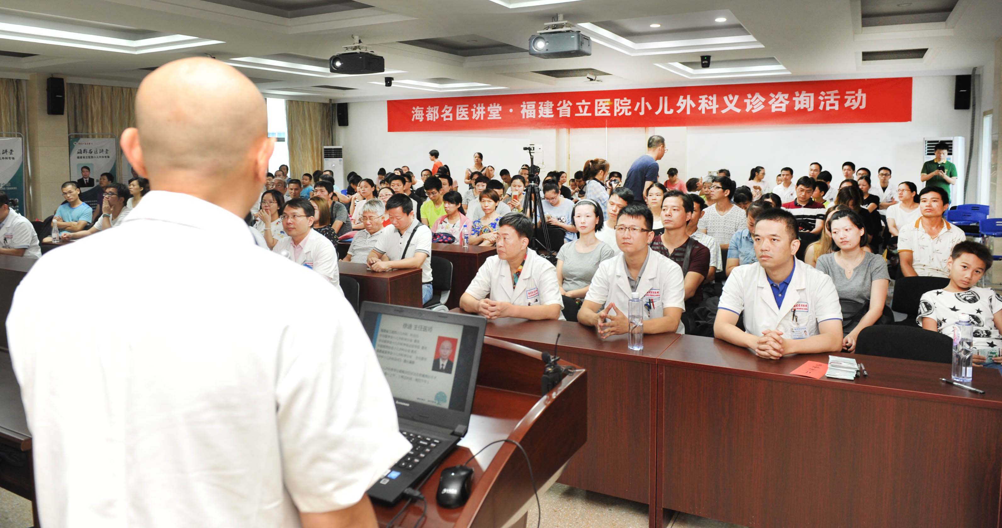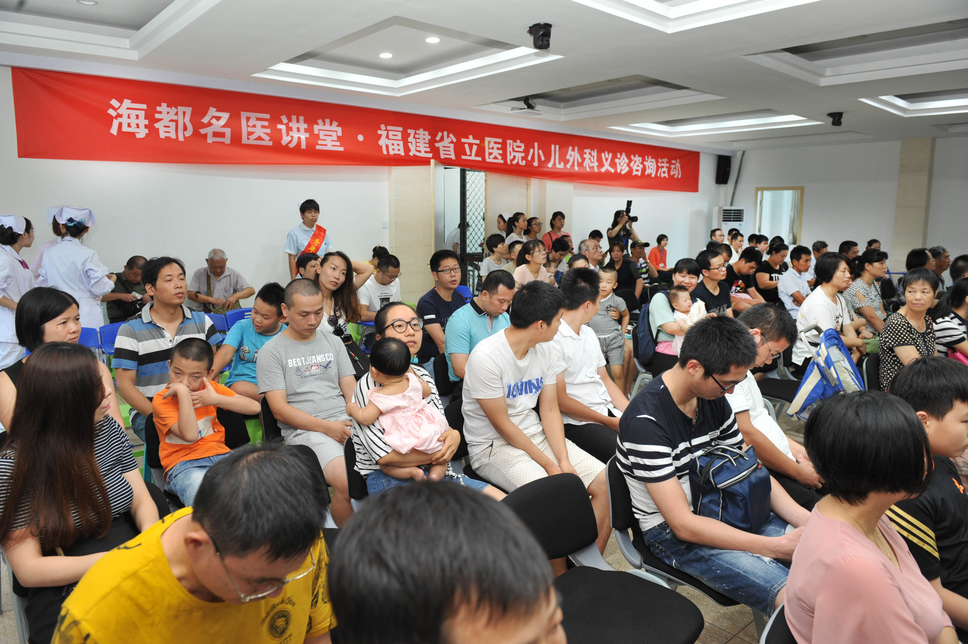 8月6日,海都名医讲堂联合我院儿外科举行科普讲座和义诊活动,当天400余名患儿和家长到场参加,义诊现场堪称火爆,同时有近2万人在线收看了视频直播,线上线下互动良好。