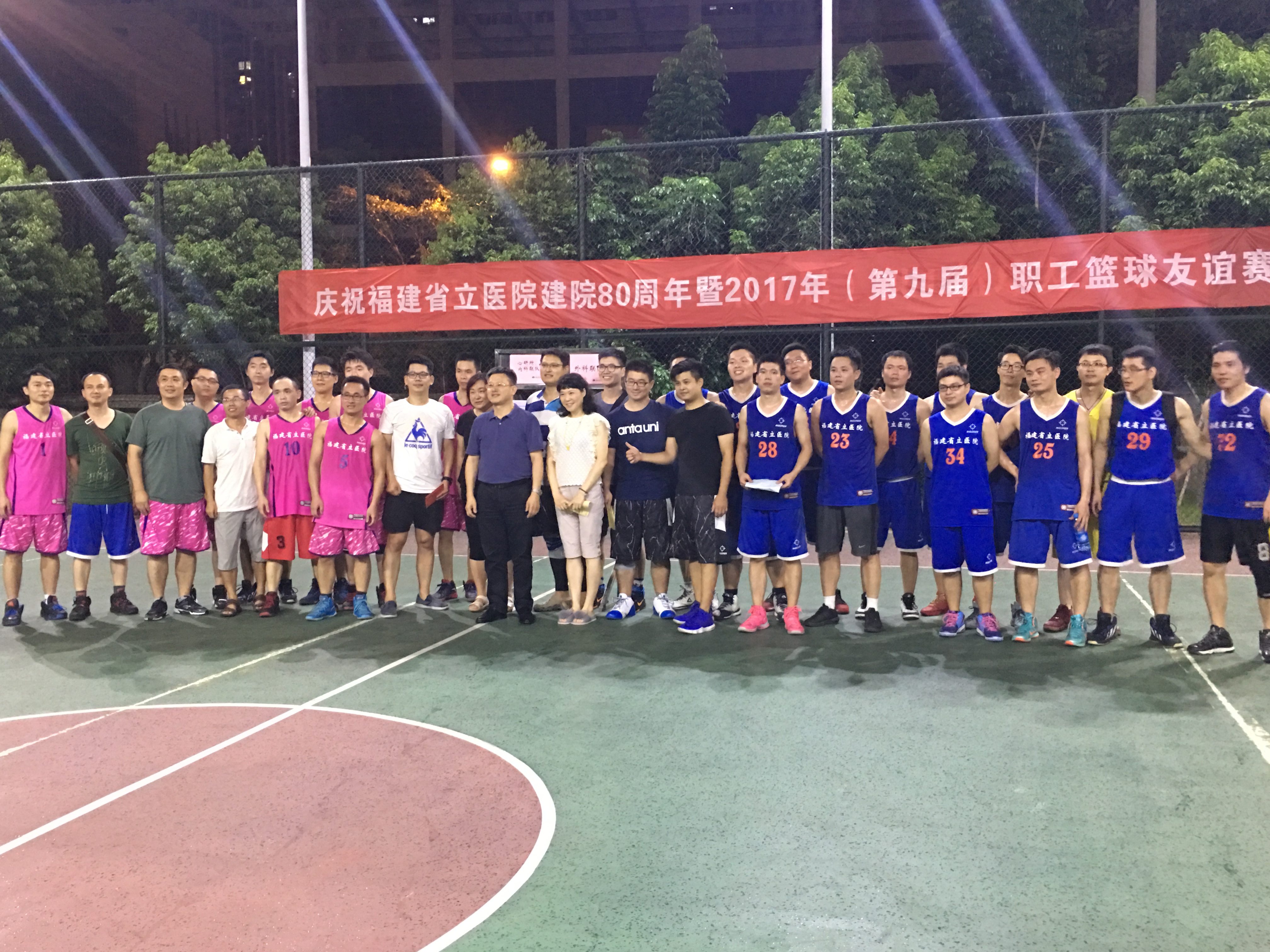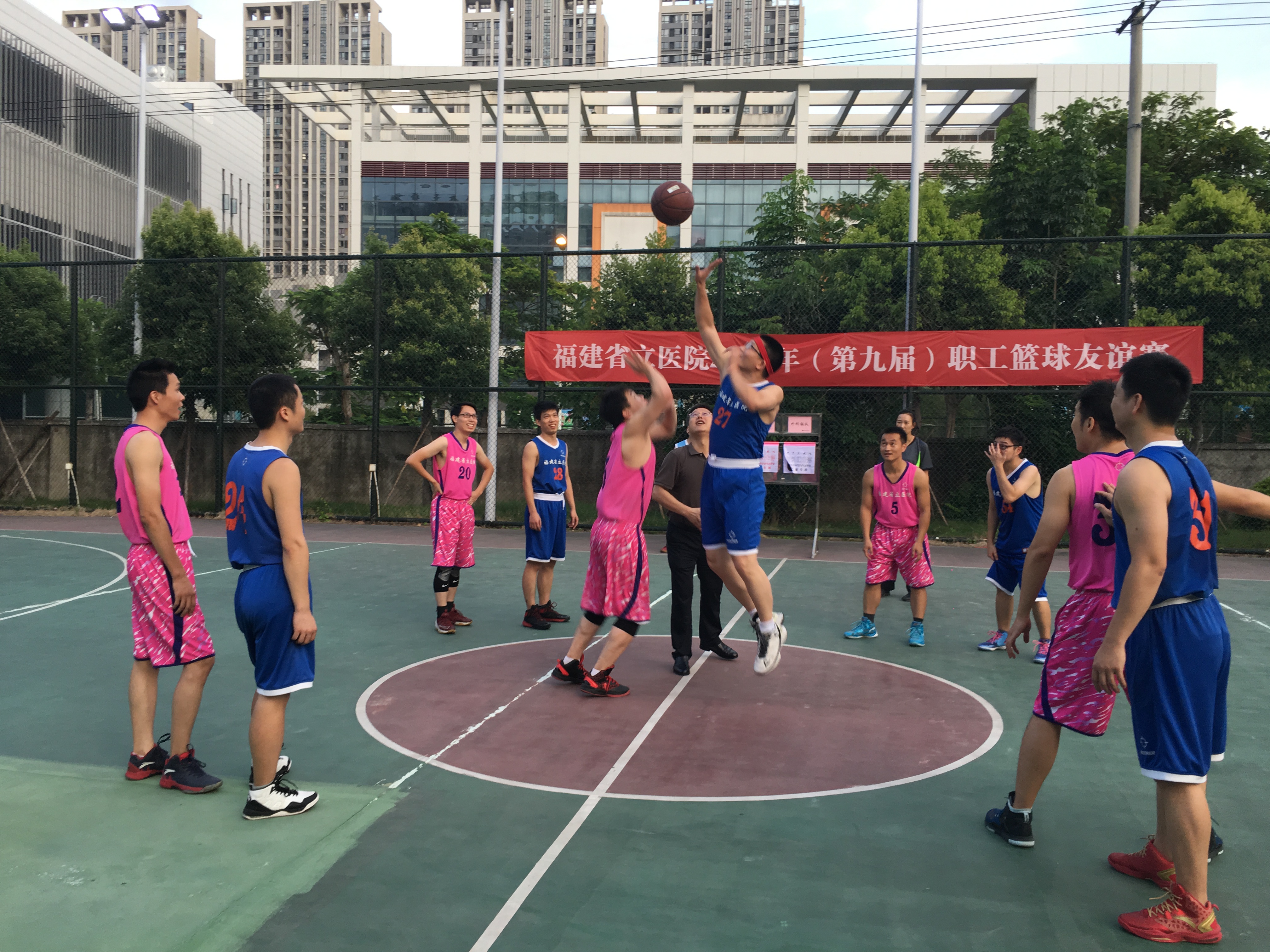 “福建省立医院2017年(第九届)职工篮球友谊赛”于2017年8月31日起至9月28日在南院篮球场顺利举行,由本部、南院、北院共96名篮球爱好者组成的外科联队、南院队、内科联队、医技联队、急救中心队、行政后勤联队、北院队等7支篮球队参加了比赛。