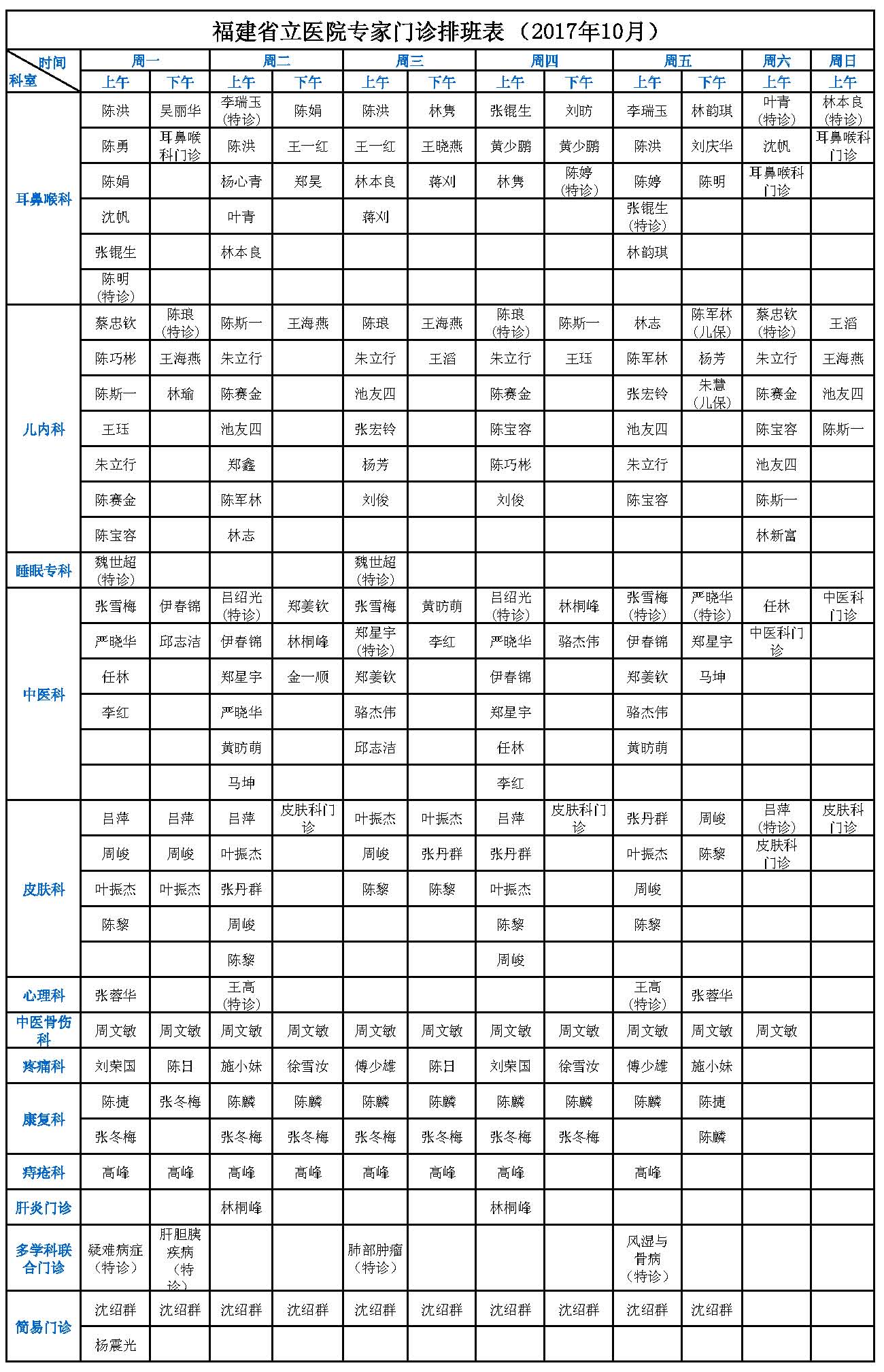 【温馨提示】点击可查看大图!(注:专家门诊如有临时变动,以院方当日公布为准!)