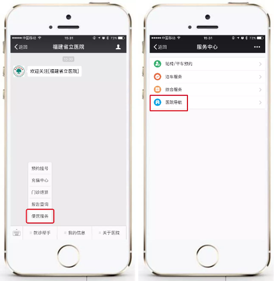 ☑ 现在患者打开手机通过“福建省立医院APP”平台进入“医院导航” ;