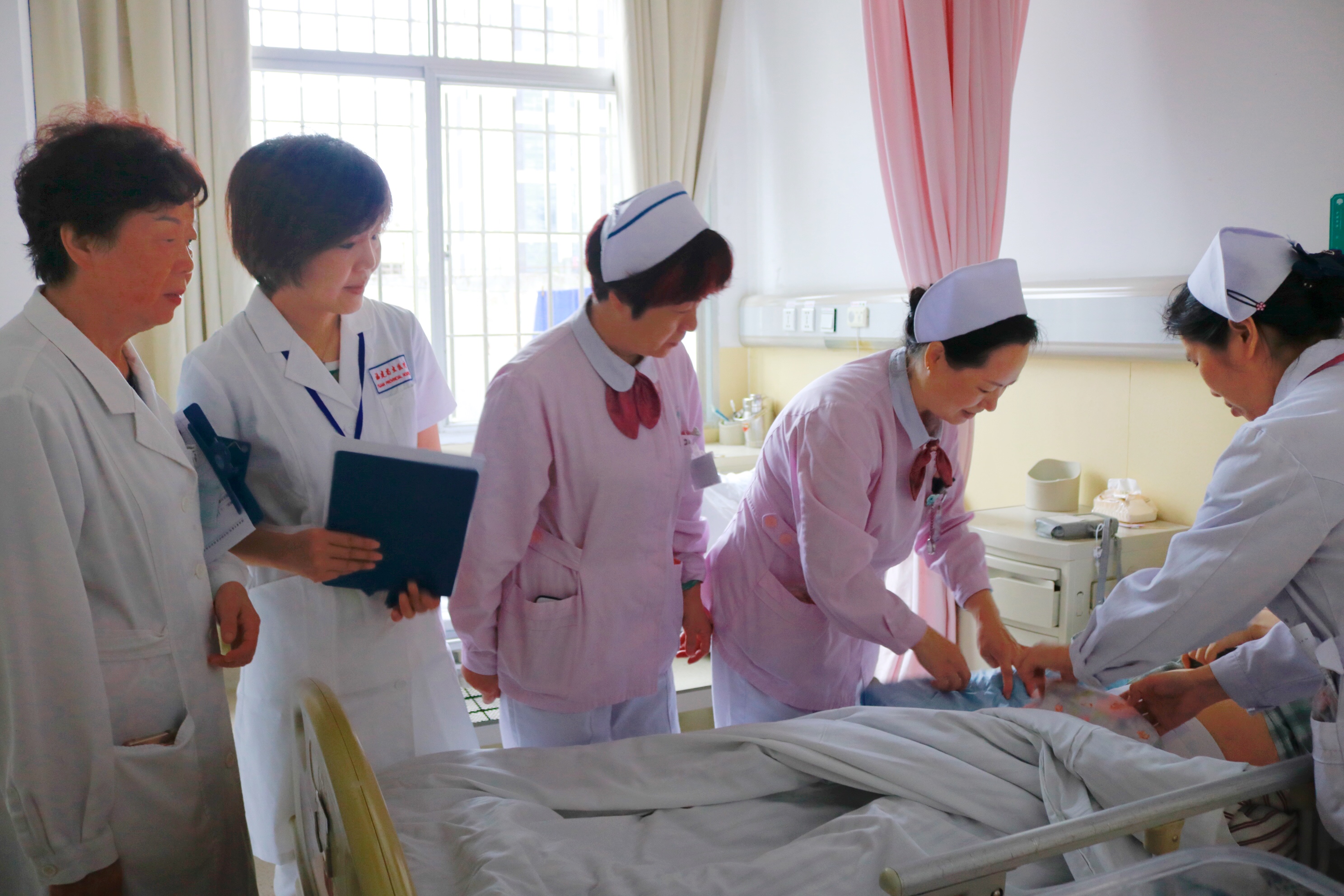 22日上午,北京协和医院护理专家在护理部主任和督导的陪同下,对我院重症医学三科、儿内科、干部特诊一科、产科、神经内科等科室进行护理管理和服务查房。