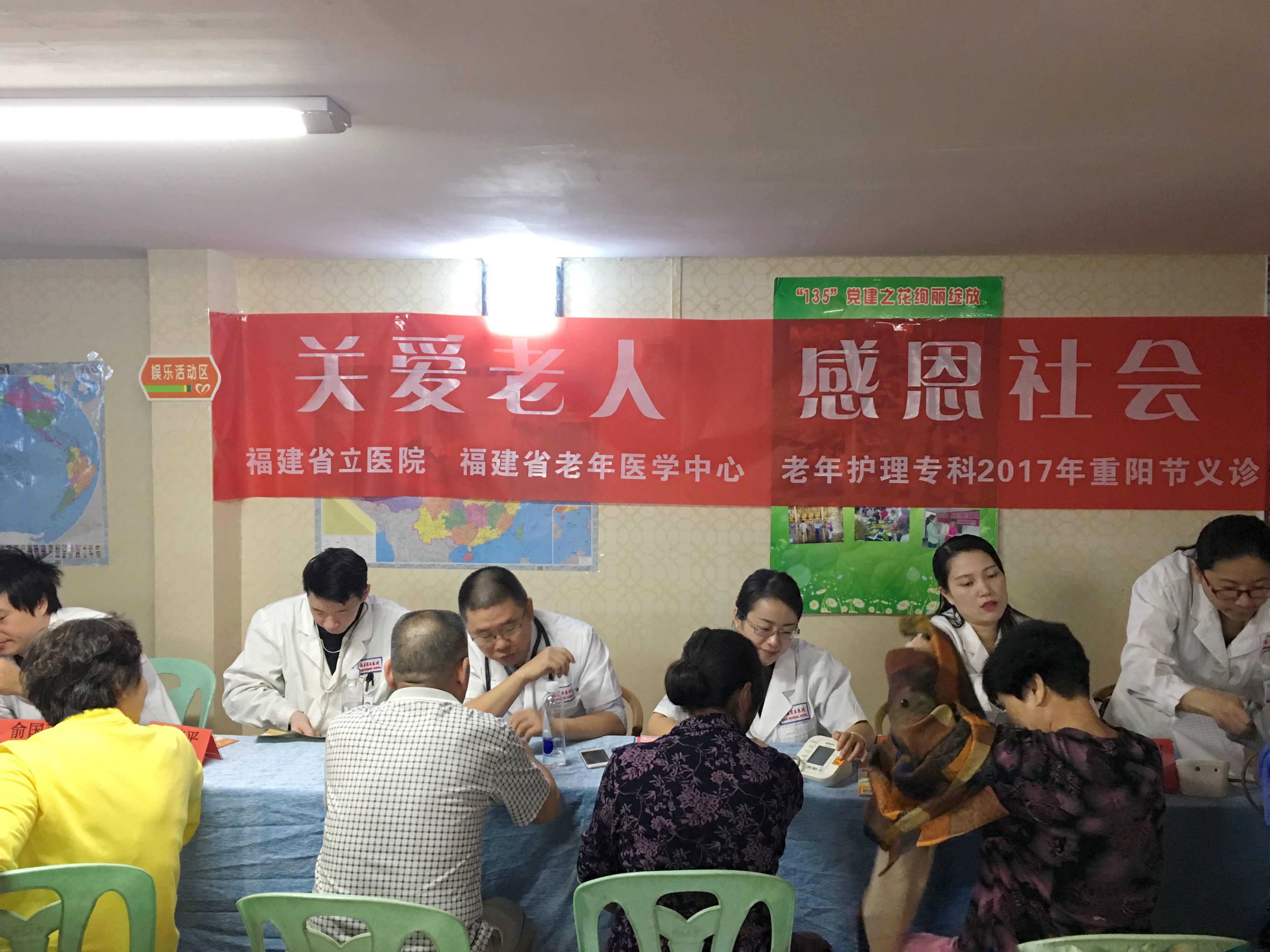 10月26日上午,在福建省立医院老年护理专科的精心筹划下,省立医院老年专科、省老年医学中心江芸、郑炜平副主任医师,骨科俞国雨主治医师,护理部陈秋华督导,老年专科护理团队李洲、张泓、涂晶、邵庭芳护士长及郑晓娜主管护师赴鼓楼区五凤街道龙泉社区老人活动中心,开展“重阳节”义诊活动。