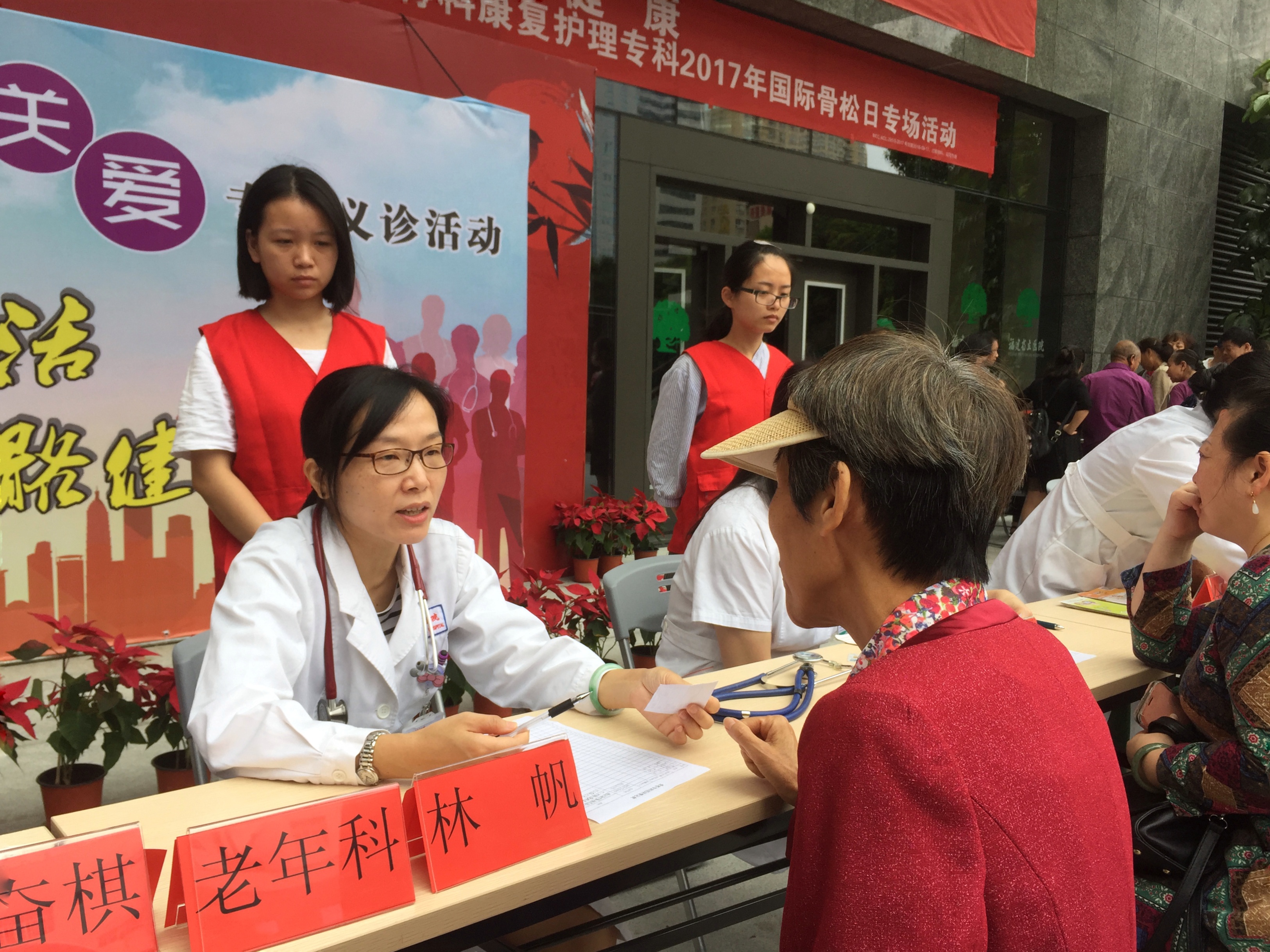 特诊二科林帆、左曼军主任医师,内分泌科蓝旭华副主任医师,骨科罗奋棋、林曦副主任医师,护理部金爽主任护师及老年、康复护理专科团队参加了此次义诊。