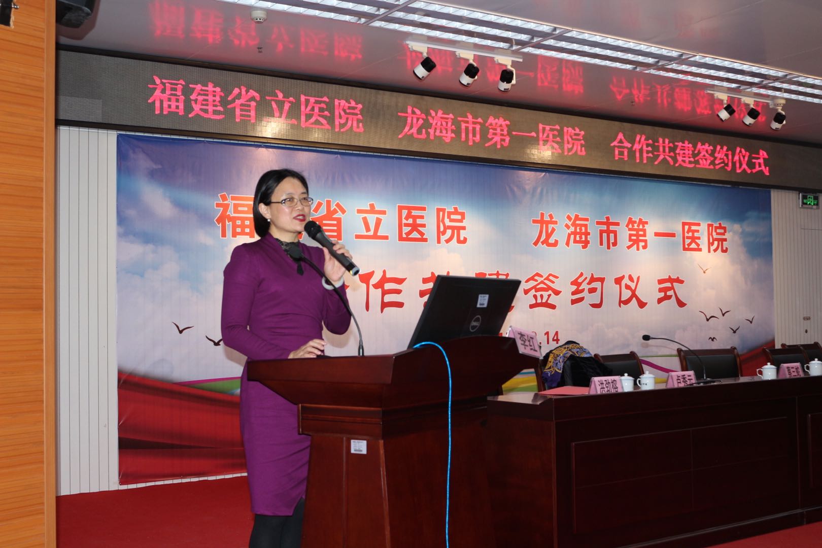 12月14日,福建省立医院、龙海市第一医院医联体签约授牌签约仪式在龙海市第一医院顺利举行。至今,我院医联体成员扩增至20个。院领导李红、游振辉,龙海市常务副市长蔡三蛇、宣传部长张碧兰、副市长卢秀云、漳州市卫计委及龙海市卫计局领导、龙海市第一医院洪劲榕院长等参加签约仪式。