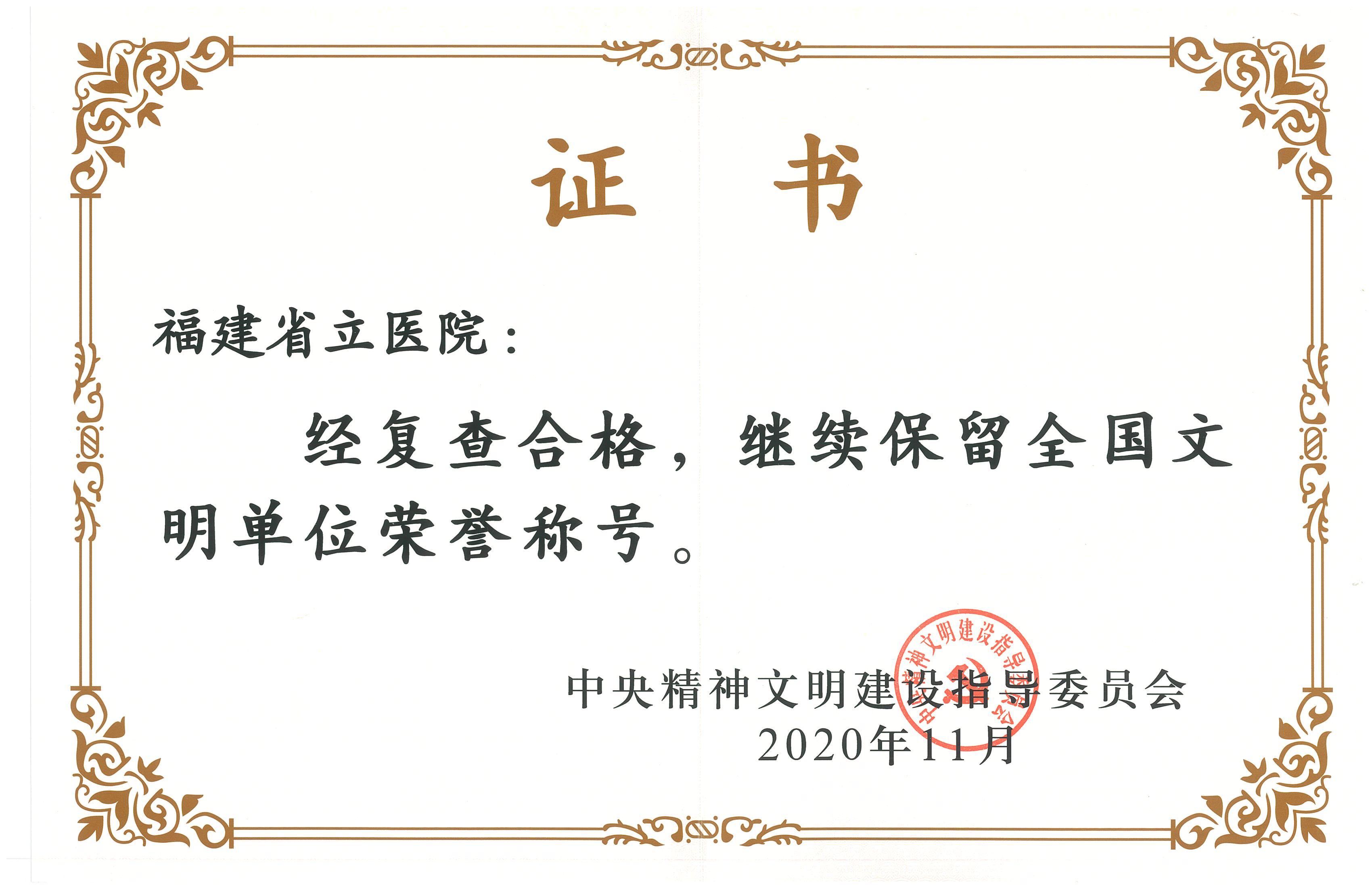 【文明创建】福建省立医院蝉联全国文明单位称号
