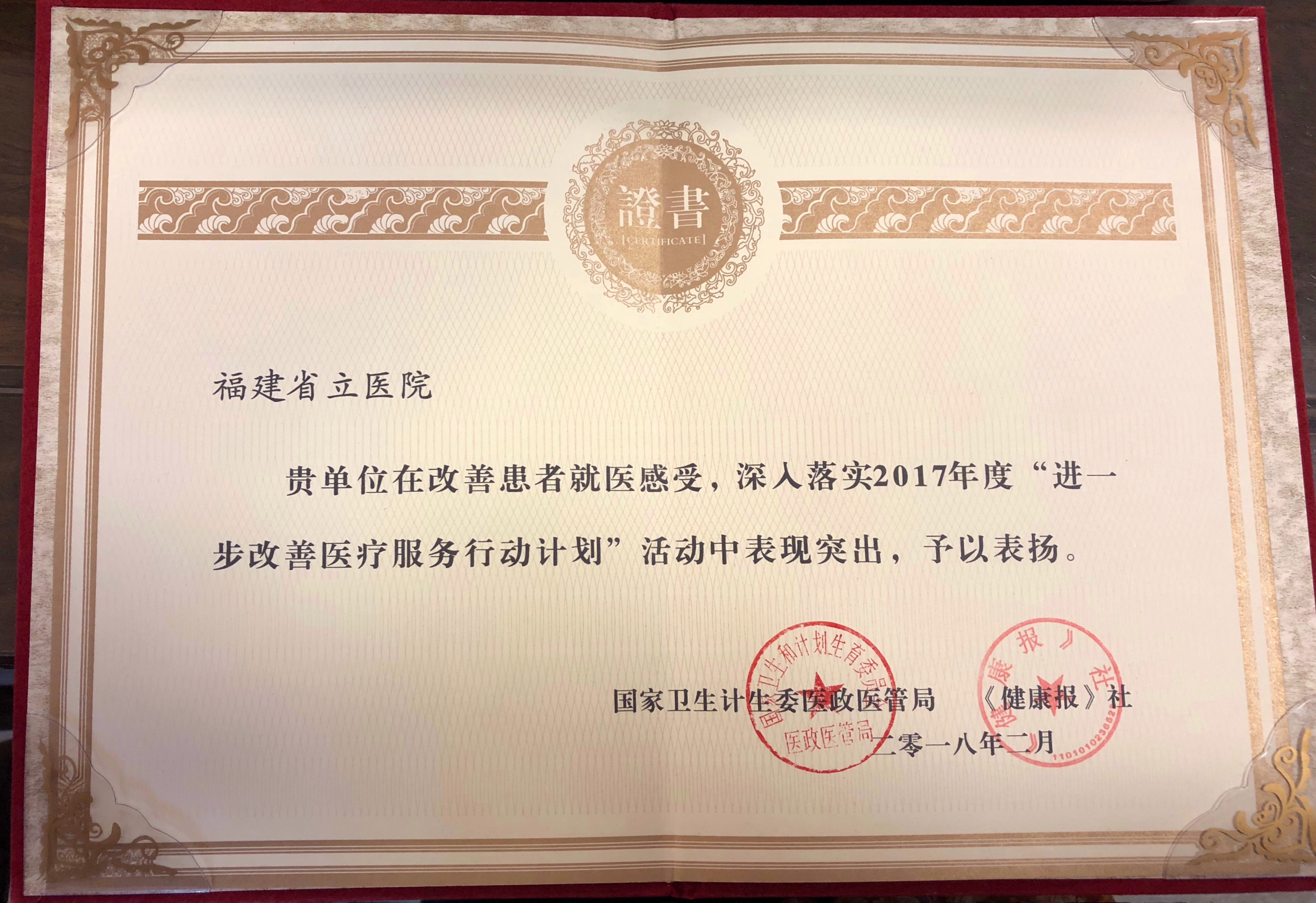 2月3日,国家卫计委医政医管局、健康报社联合举办的进一步改善医疗服务行动计划三年总结推广暨下一阶段宣传工作启动会在京举行。我院荣获2017年度“改善医疗服务示范医院”。
