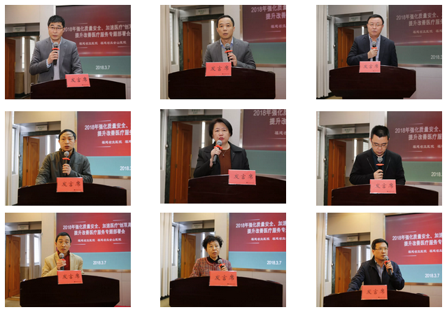 会上,医务部林孟波副主任、南院医教部陈涛主任、肝胆外科王耀东主任、南院重症医学一科林兴盛副主任、医院感染管理部林璇主任、总务部郑海翔主任,科研处陈刚处长、省急救中心办公室陈兵主任、呼吸内科谢宝松主任、设备处林强处长,护理部陈晓欢主任、医院服务中心林茜主任、南院门诊部马晓佳副护士长、信息管理中心张琼瑶主任、南院内科林棱主任、小儿外科徐迪主任等16个部门负责人分别围绕强化质量安全、加速医疗“创双高”、提升改善医疗服务三项重点作表态发言,汇报2018年工作思路和目标。院领导魏世超、陈锋、付冬香、游振辉、韩涛、孙保华、郭延松、郑晓春就各科室发言作点评并提出具体工作要求。朱鹏立院长作了总结发言,李红副院长主持会议。