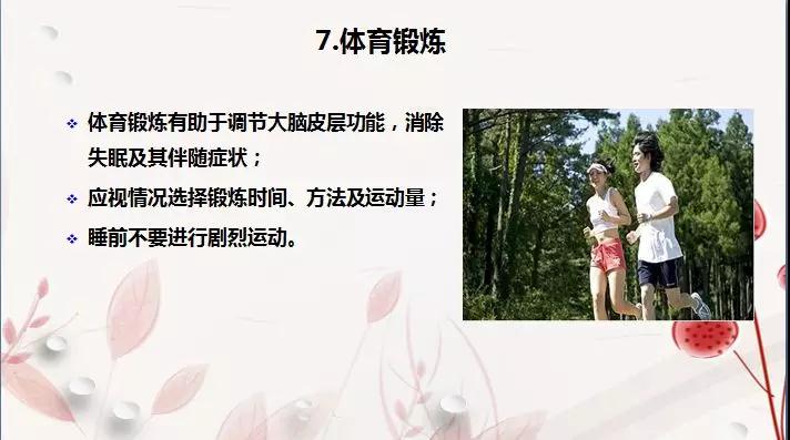4. 睡前至少1小时内不要做容易引起兴奋的脑力劳动或观察容易引起兴奋的书籍和影视节目。