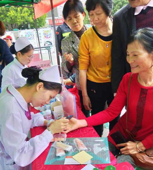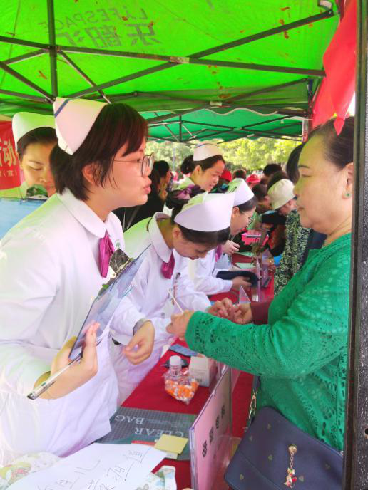 3月榕城,春暖花开。福建省立金山医院糖尿病专科、母婴专科、静脉及肿瘤专科共7名护士与福建金山社区卫生服务中心携手在福州金山榕城广场开展义诊咨询活动。此次活动共为120余人免费测量血压、血糖及新生儿黄疸值,并提供肿瘤术后患者康复及糖尿病科学饮食等健康咨询。护士们贴心的服务与专业的指导得到了居民朋友们的高度赞赏。