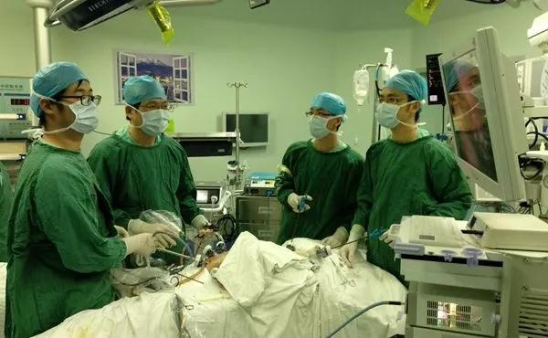 徐驯宇主任及黄郴、陈前顺主治医师在麻醉二科方闻主任、重症医学四科林风辉主任医护团队的通力合作、配合下,采用微创的方法,顺利为裘老伯进行了食管癌切除手术,在患者胸腔和腹腔上钻几个12.5px-25px的小洞,就完成了肿瘤切除和消化道重建,避免以往开胸手术带来的巨大手术创伤。