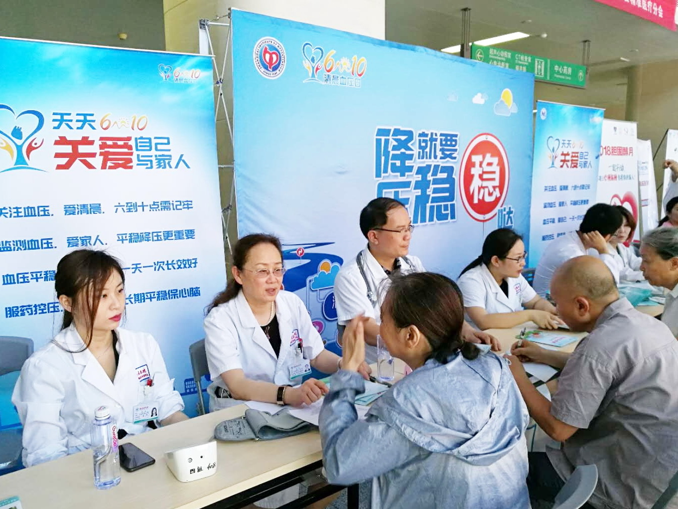 5月17日上午,我院心血管内二科在6号楼大厅开展“世界高血压日、血管健康日”义诊活动。心血管内科陈慧主任医师、杨柳青主任医师、俞玲主任医师、吴小盈副主任医师、陈威副主任医师等专家现场答疑,帮助大家拟定个体化的自我健康管理方案。