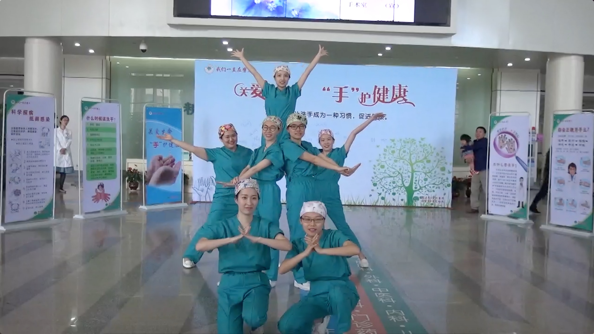 ▲医护人员自编自演轻松有趣的《洗手舞》
