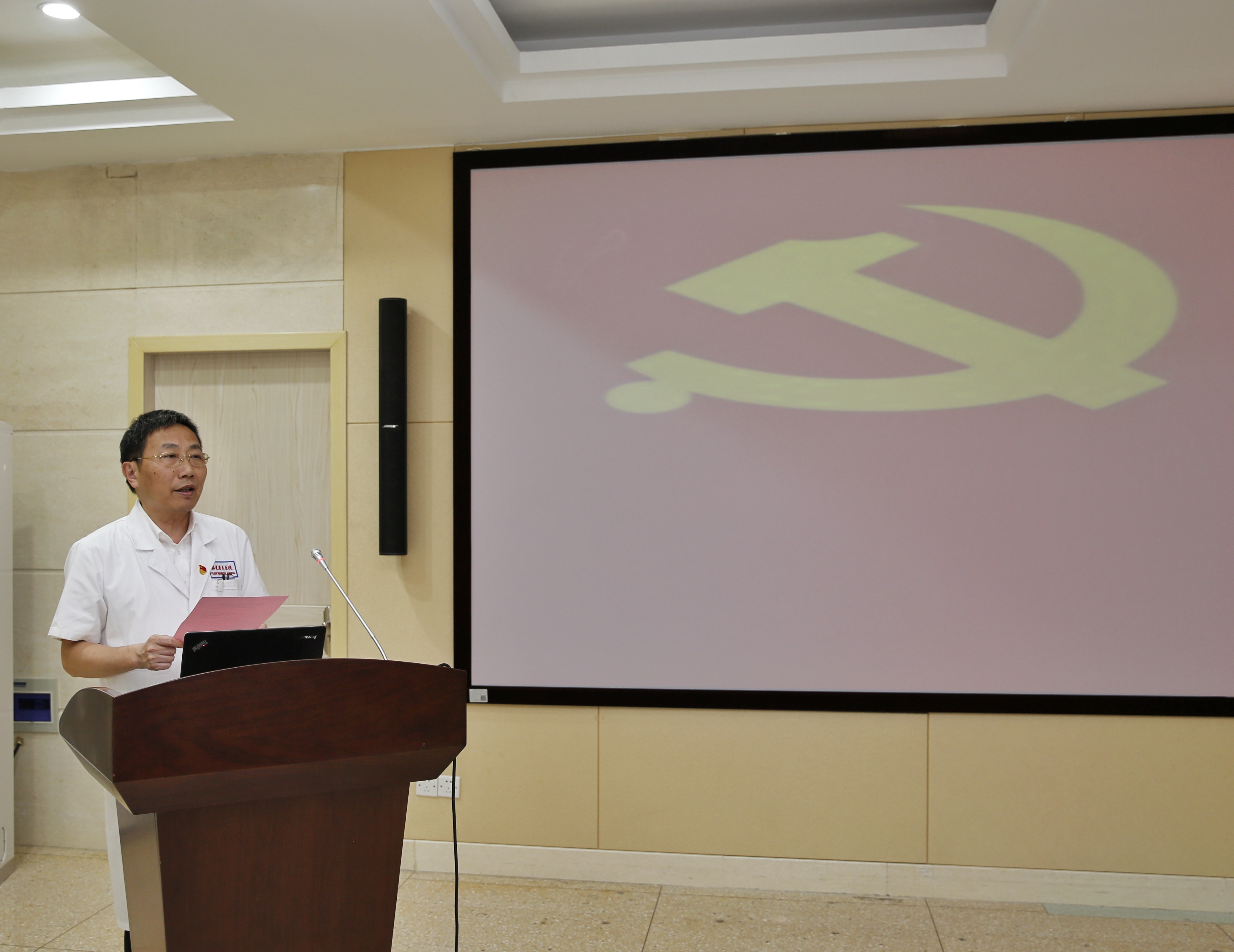 7月1日上午,福建省立医院、福建省立金山医院开展重温入党誓词活动。在党委书记朱鹏立同志领誓下,院党委委员、党支部书记、团委书记面对党旗一起重温入党誓词,庄严宣誓。