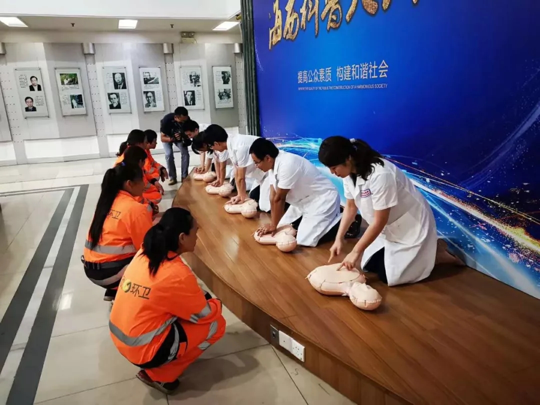 2018年6月15日,共青团福建省立医院委员会、共青团福建省立金山医院委员会、福建省急救中心团支部参加了在福建省科技馆举办的关爱清洗保洁职工“夏季防暑保健及急救知识”科普讲座、健康急救实操演练、高温慰问等系列活动。