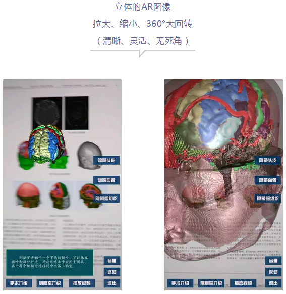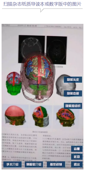 通过观看清晰立体的AR图像,实现静态信息传递向交互传递方式的转变,医学期刊的阅读形式从此变得多样化。与传统期刊相比,该方式能够三维立体地呈现期刊中的相关示意图,还可将该类图像文字说明嵌入其中,突破版面限制,带给读者更加直观、更加清晰、更加详尽的阅读体验。