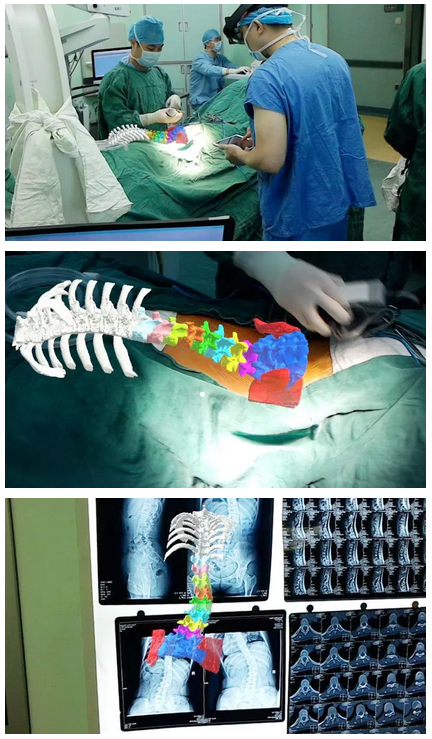 2017年,骨二科已成功运用全息混合现实技术治疗脊柱侧弯