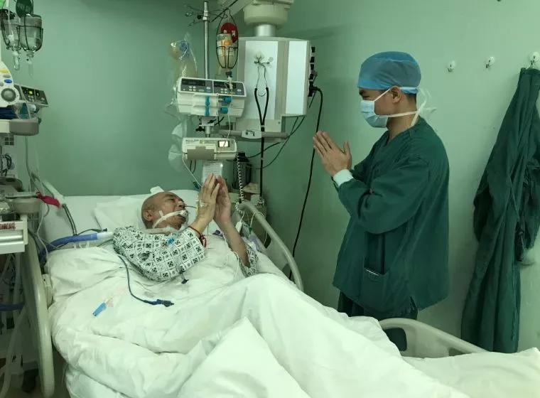 收到这段文字,医生和体验者们又一次围到老大爷的床前再次表达谢意。体验者们也学着老大爷的样子,向他伸出了大拇指。