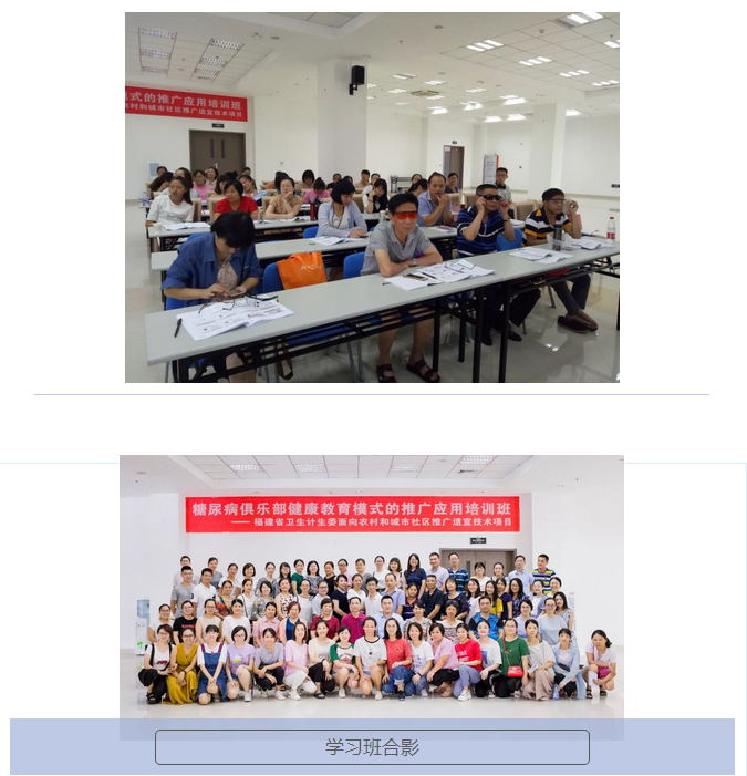 此次培训班为福建省卫生计生委面向农村和城市社区推广适宜技术项目,课程分为理论课和实践体验课两部分,内容涵盖糖尿病相关知识、健康饮食生活指导、慢性病体验课、俱乐部推广的实施步骤与方法等。学员们表示,培训进一步丰富了自身慢病管理及糖尿病管理的知识体系,为推广糖尿病俱乐部模式,更好地造福周边居民打下了坚实基础。