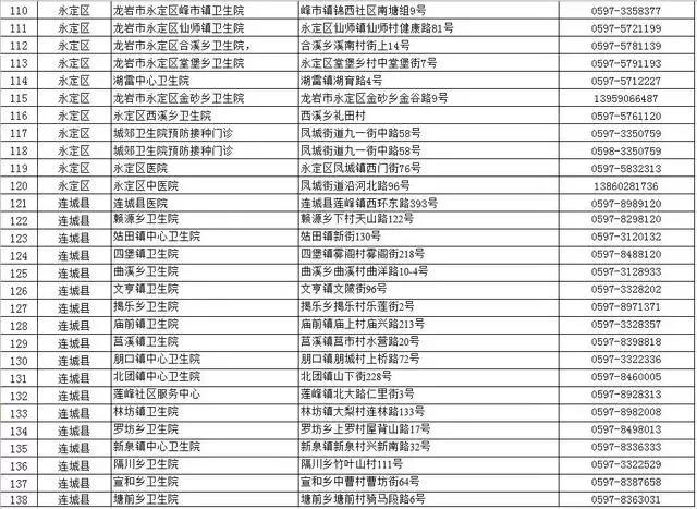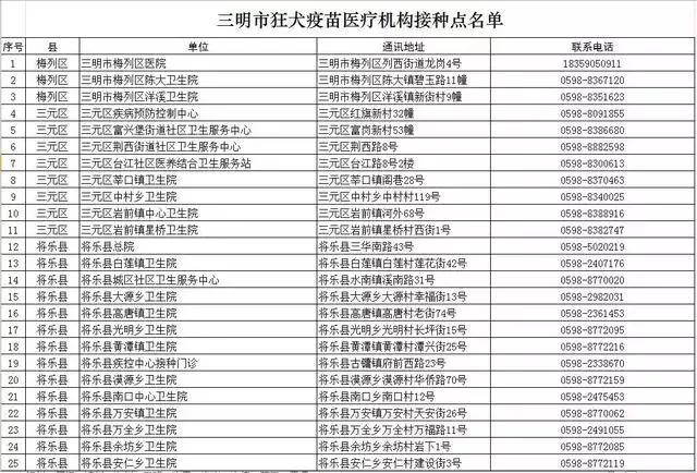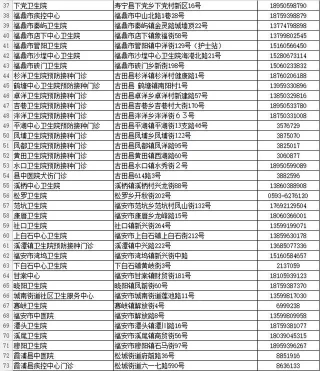 福建省卫计委公布《福建省狂犬疫苗医疗机构接种点名单》