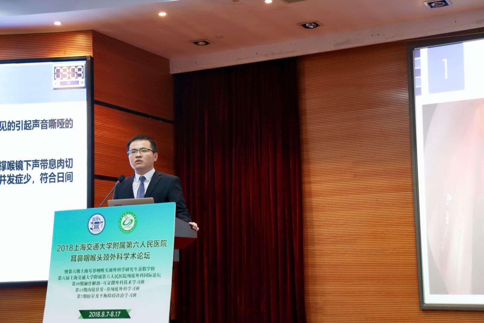 日前,第六期上海耳鼻咽喉头颈外科全国研究生暑期学校擂台赛在上海拉开帷幕,全国各大高校15名博、硕士研究生同场竞技。经过激烈角逐,我院耳鼻咽喉科叶青教授指导的研究生潘旭烽,凭借精心准备的参赛课题《声带息肉日间手术后用药方式同声带形态及嗓音功能恢复的相关性》荣获擂台赛一等奖。