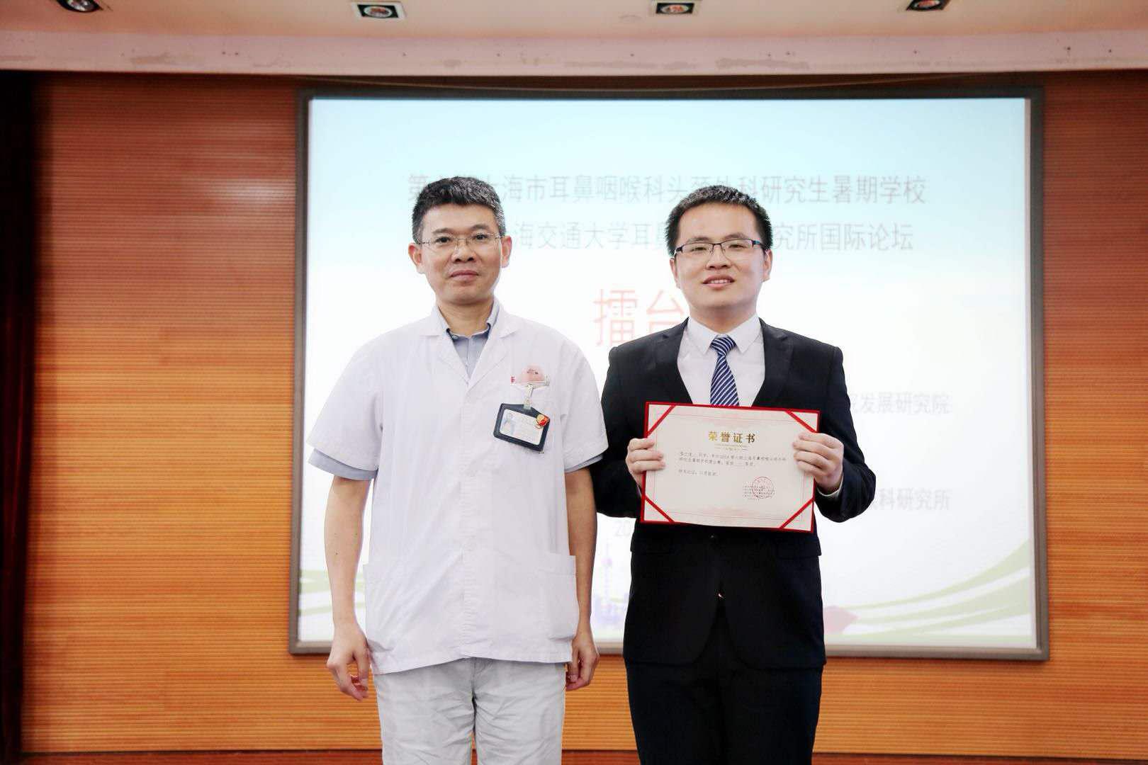 上海市第六人民医院耳鼻咽喉头颈外科时海波教授为潘旭烽颁奖