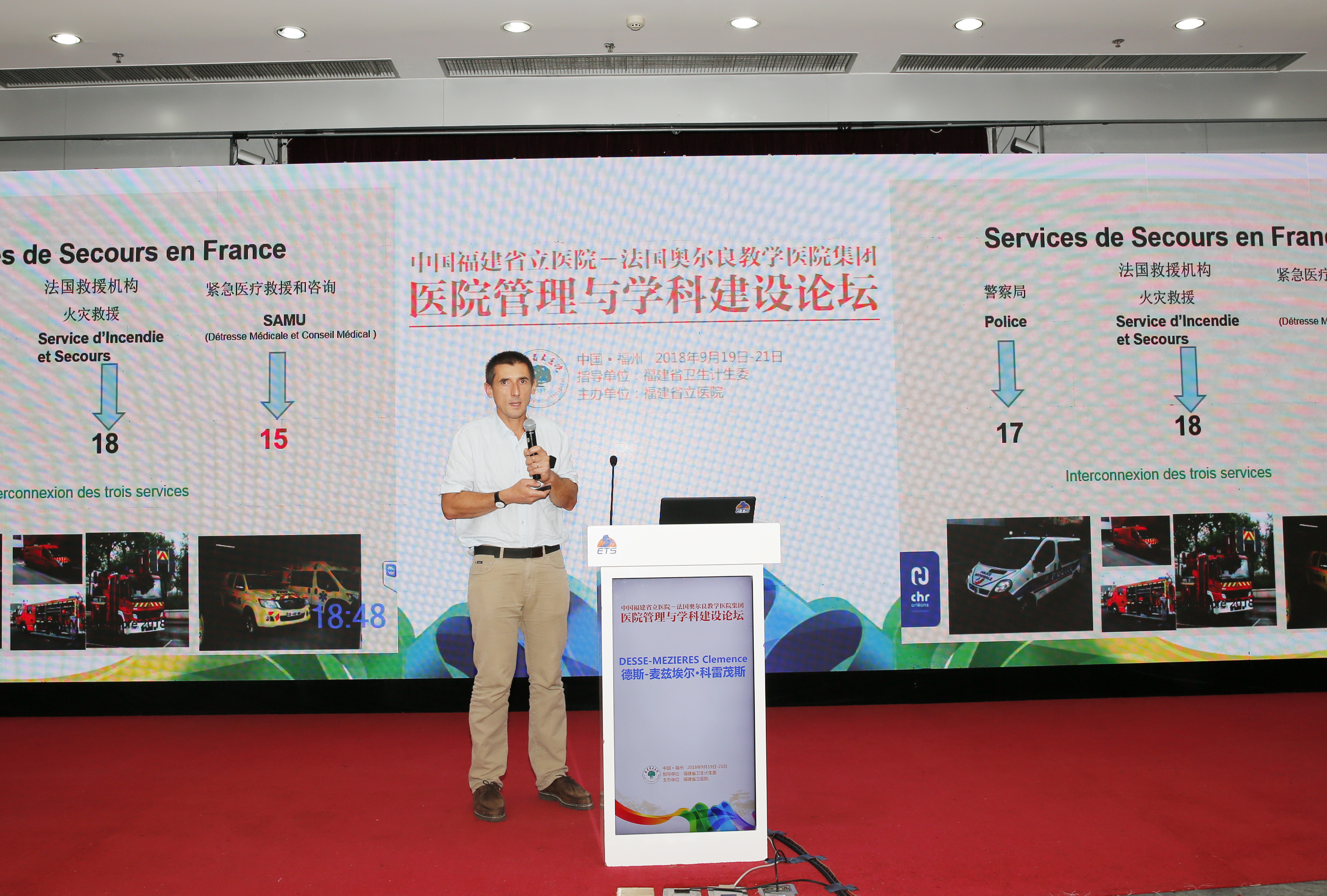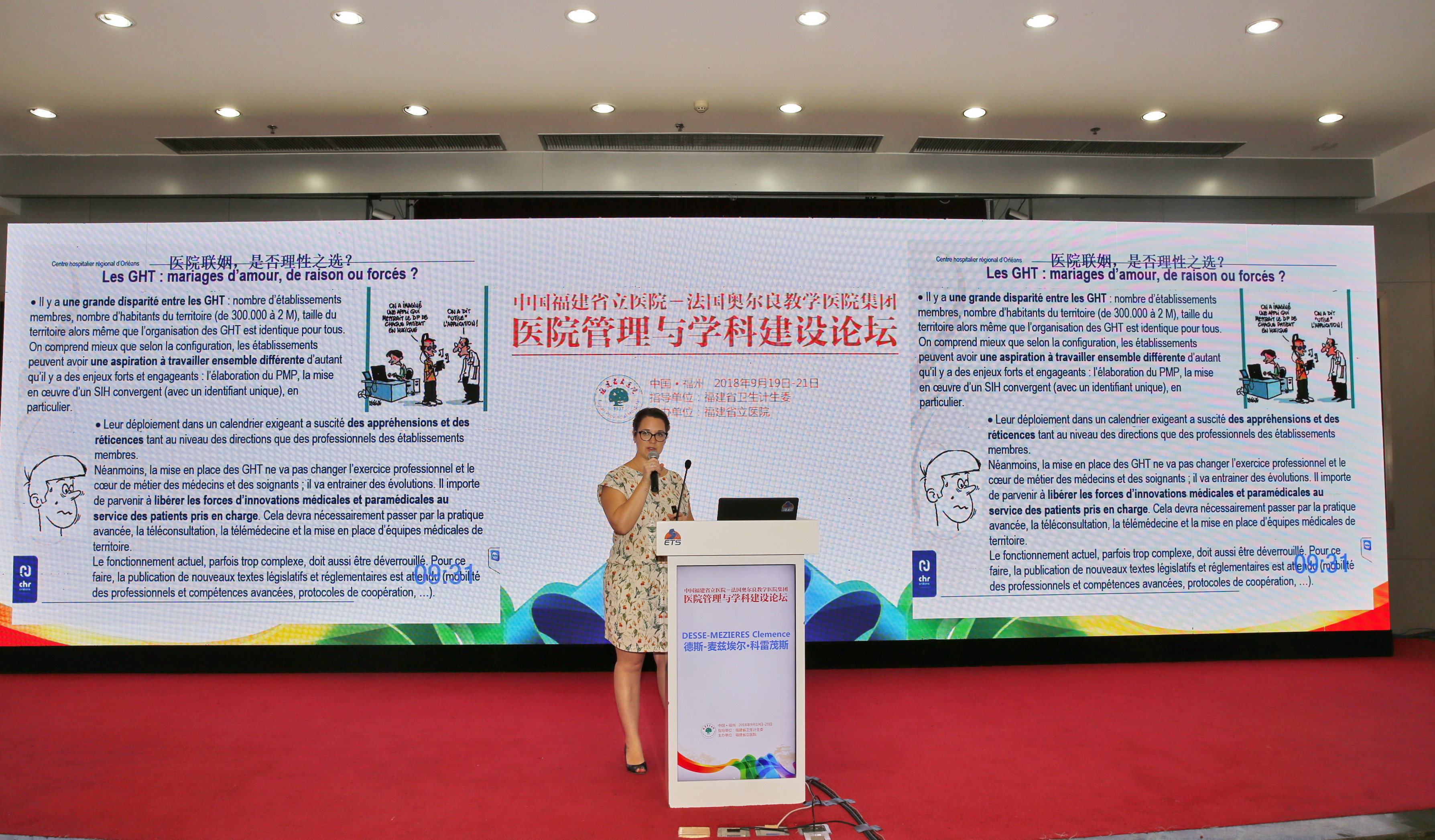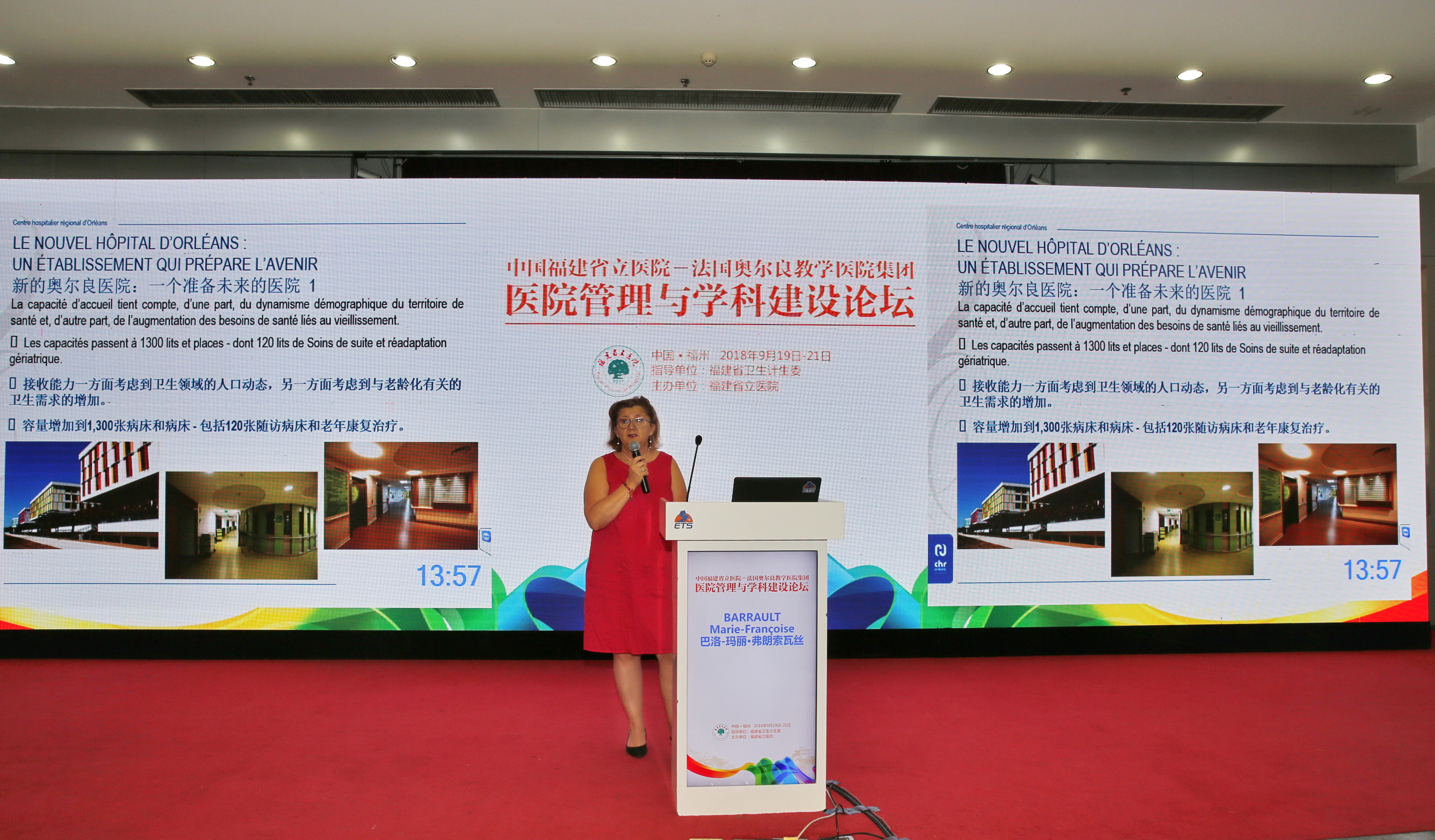 初秋时节,天空湛蓝、绿意盎然的榕城迎来一批来自法国的客人。9月19-21日,中国福建省立医院—法国奥尔良教学医院集团医院管理与学科建设论坛在福建省立医院顺利举行。此次论坛特邀法国医院评审评估专家、法国奥尔良教学医院集团专家学者一行7人前来演讲授课。来自福建省立医院、南院、北院、省立医院医联体成员单位以及全省三级医院的管理人员和相关专业医务人员代表350余人参加了论坛。大家共同学习了解法国的医院管理、学科建设方面的先进经验和成果。福建省卫生计生委副主任陈晓春教授出席论坛开幕式。