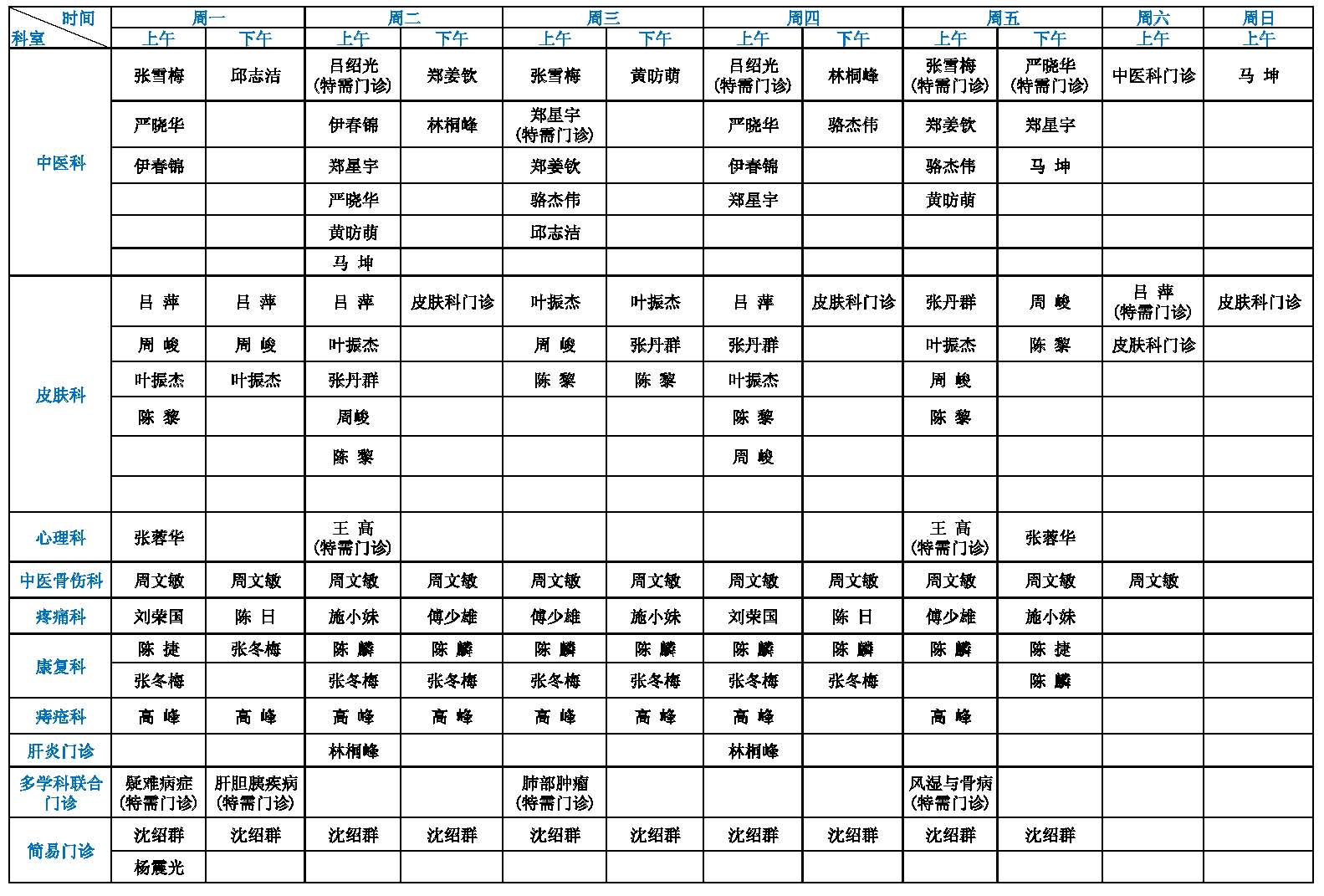 【温馨提示】点击可查看大图!(注:专家门诊如有临时变动,以院方当日公布为准!)